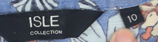 Isle Women's Blue Floral Cotton Blouse, Size 10