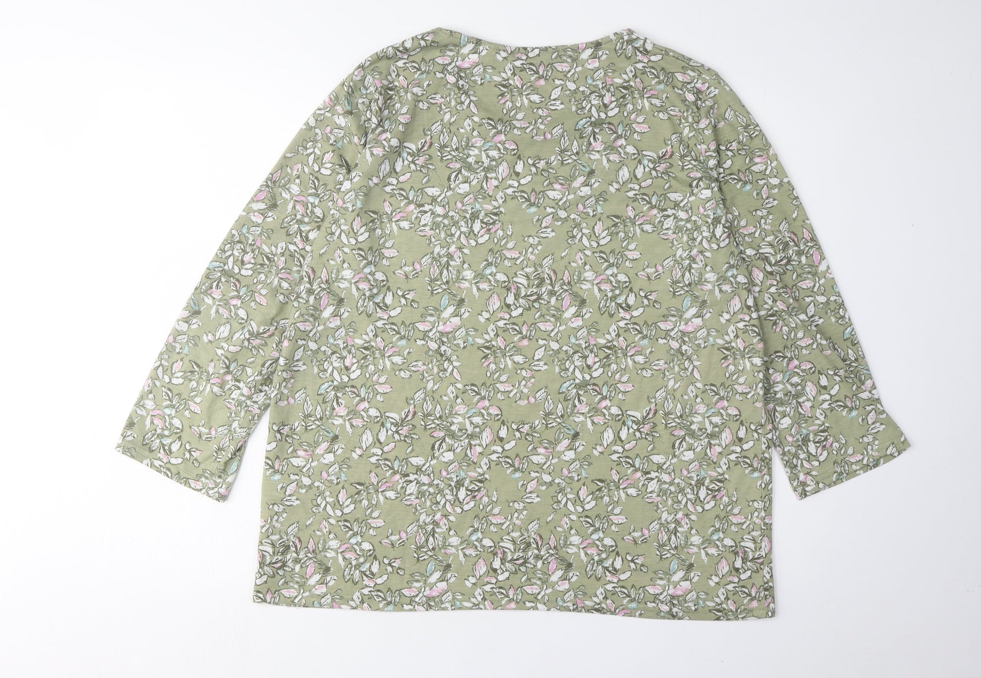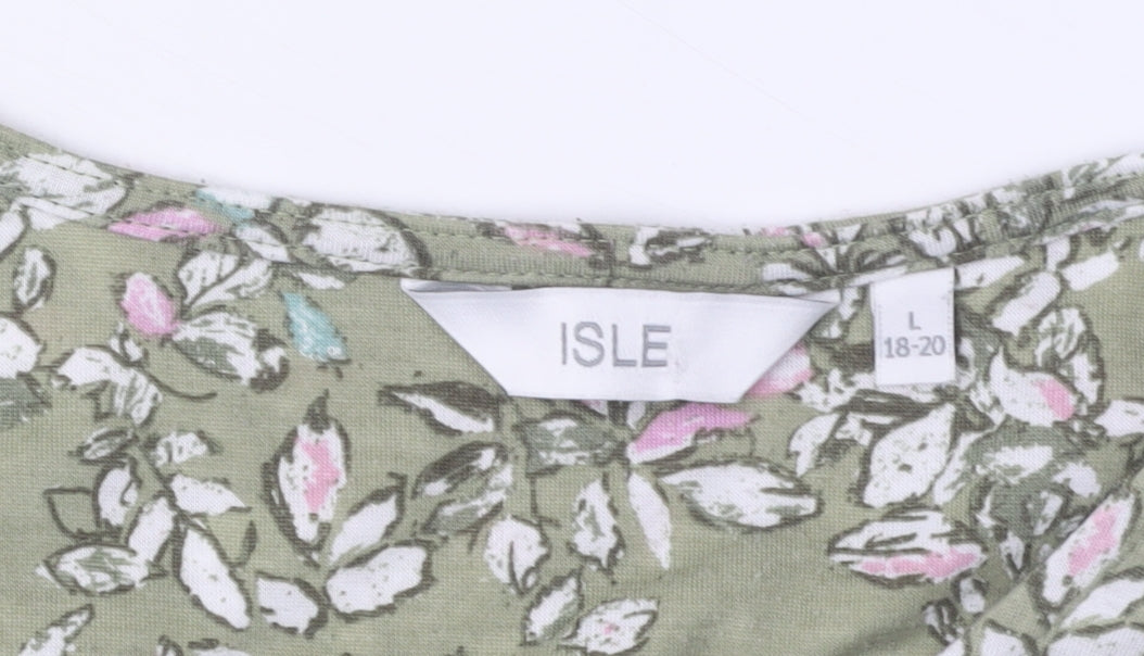 Isle Women's Green Floral 3/4 Sleeve Top Size L