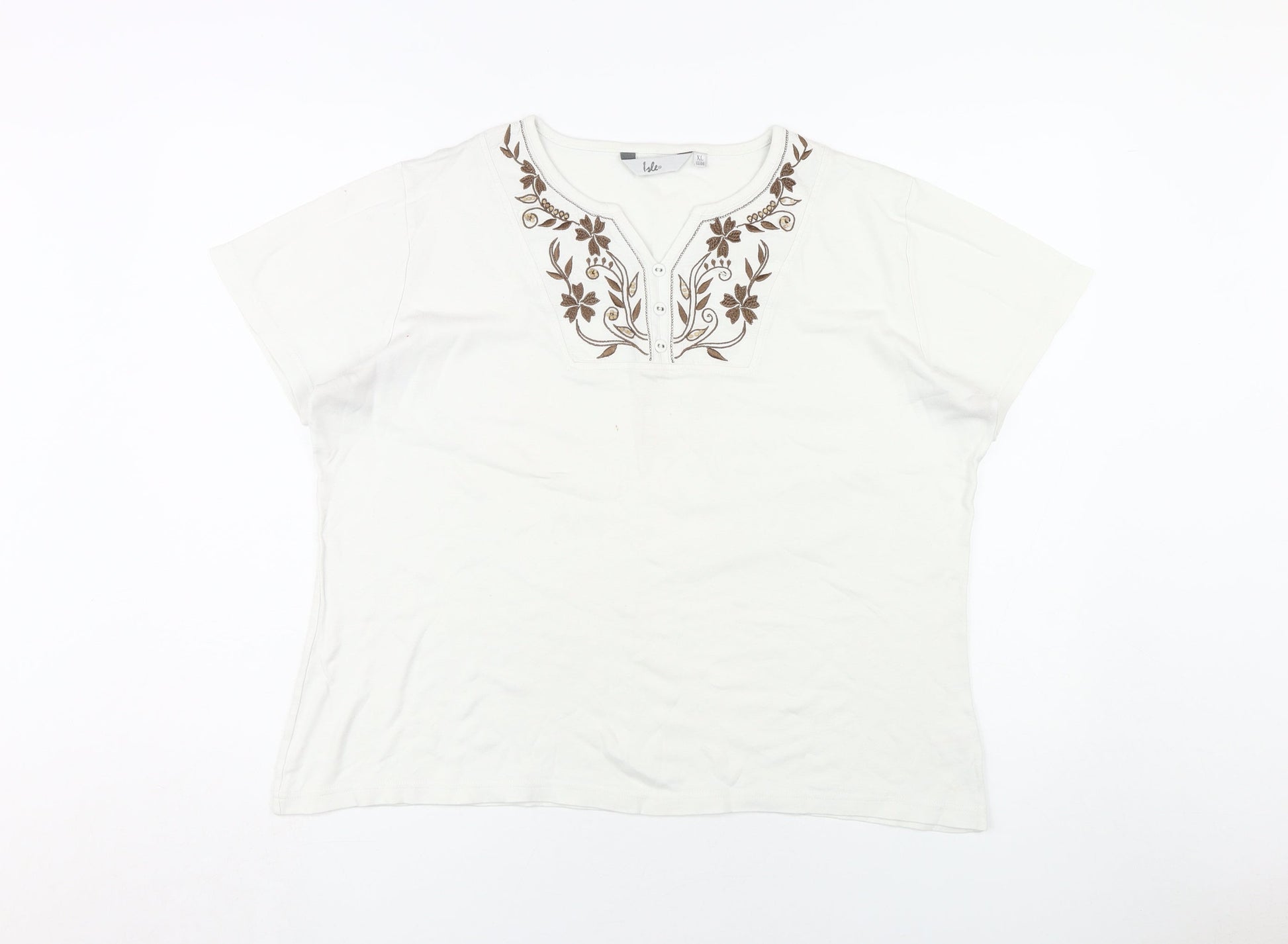 Isle Women's White XL Embroidered Cotton T-Shirt