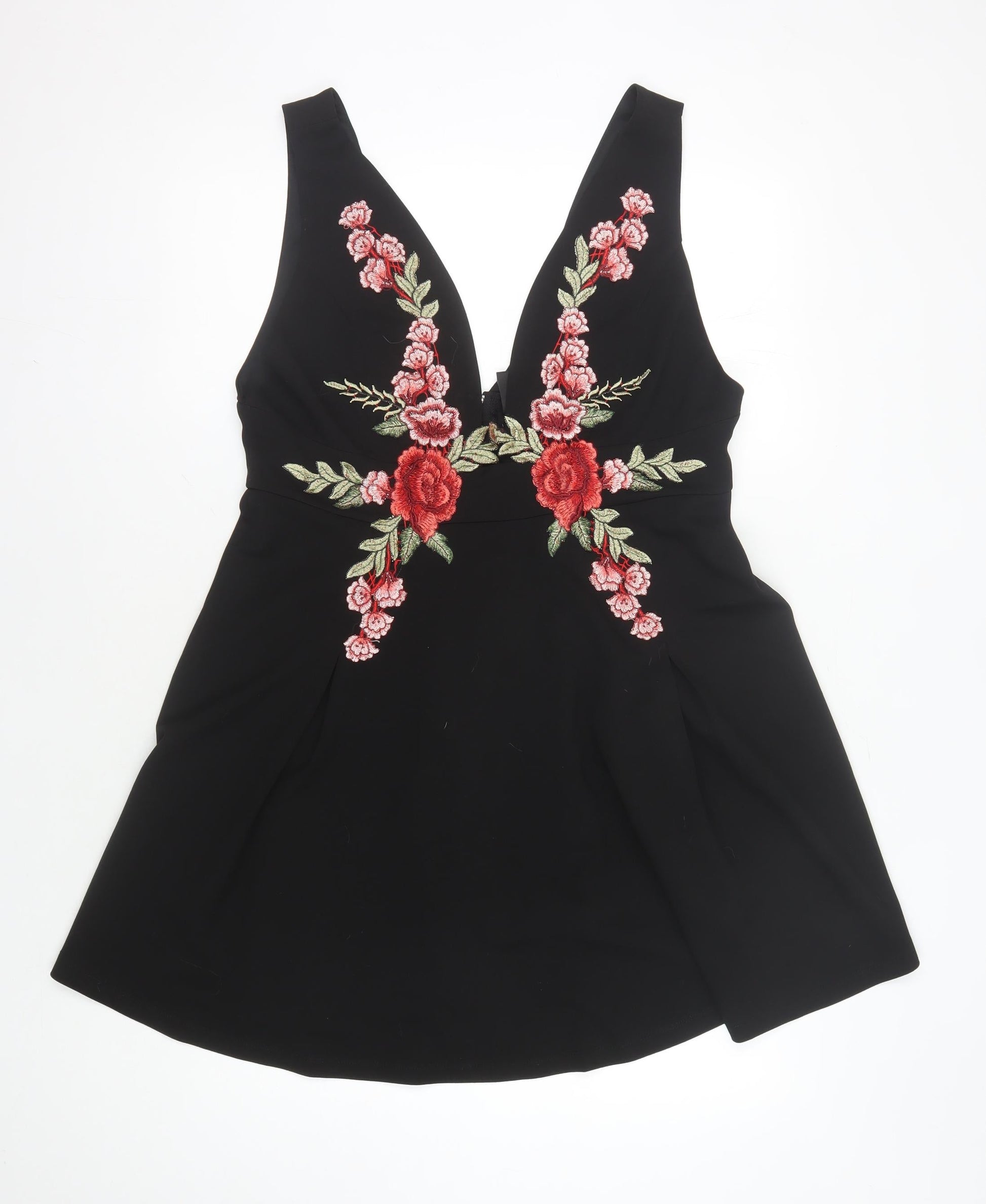 Izabel London Women’s Black Floral Embroidered Dress, Size 16