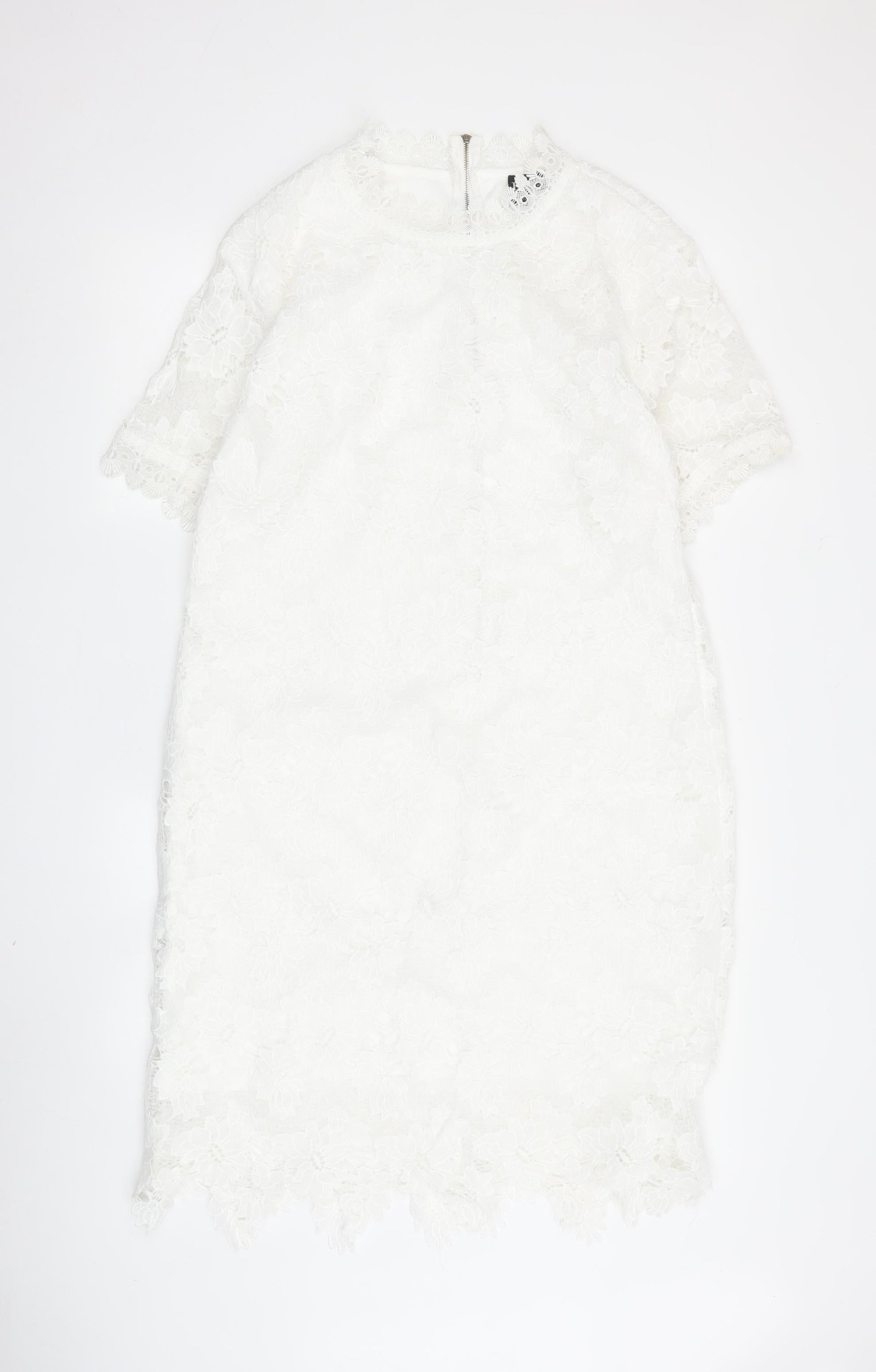 Izabel London Women's White Floral Lace Shift Dress Size 18
