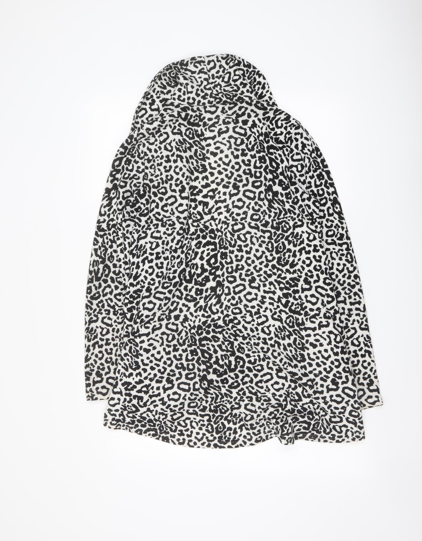 Izabel Womens Black V-Neck Animal Print Polyester Cardigan Jumper Size M - Leopard pattern
