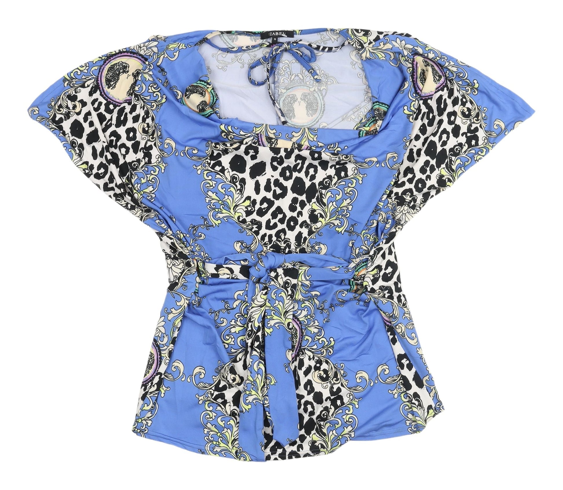 Izabel Women's Blue Tunic Blouse with Animal Print