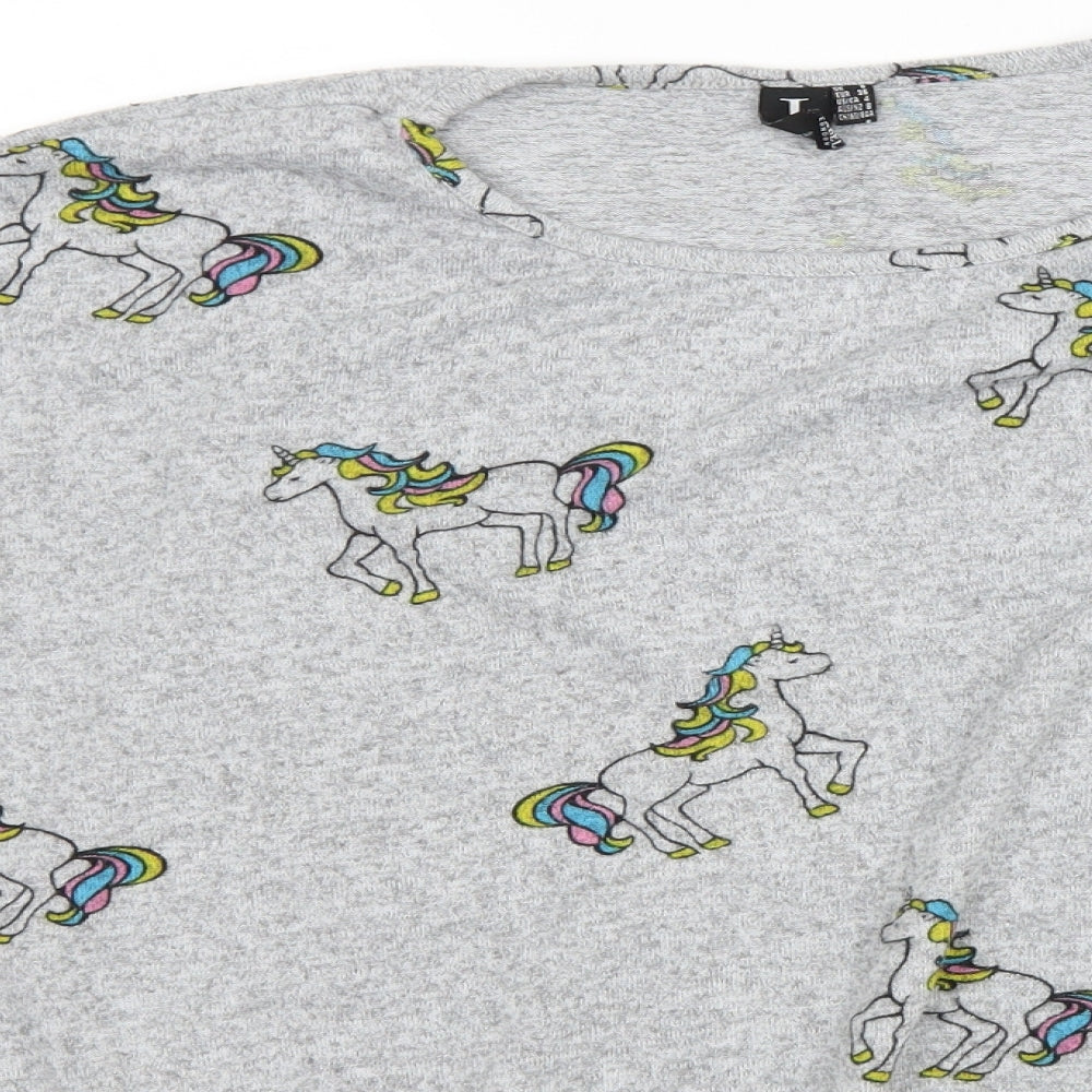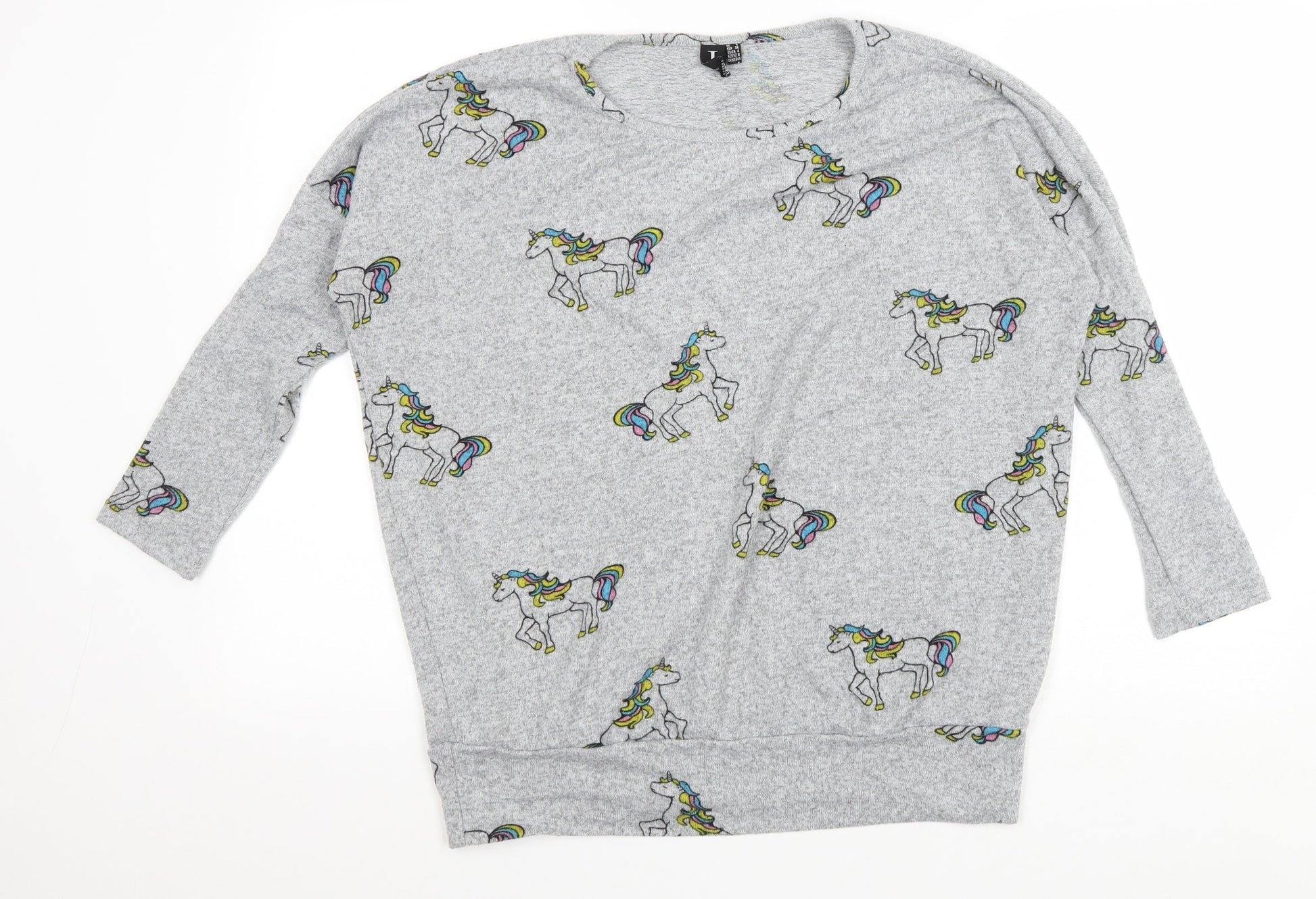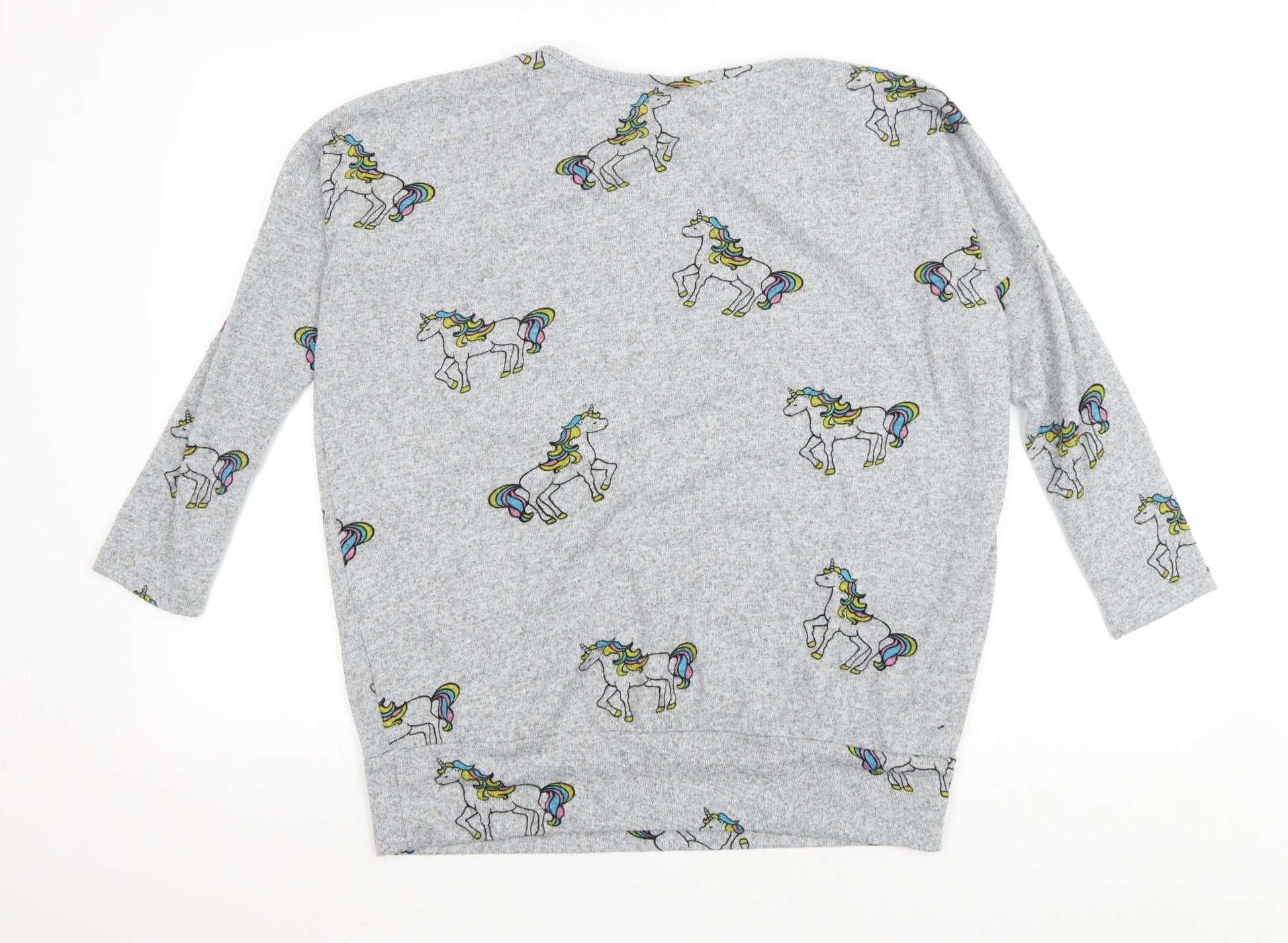 Izabel Womens Grey Scoop Neck Geometric Polyester Pullover Jumper Size 8 - Unicorns