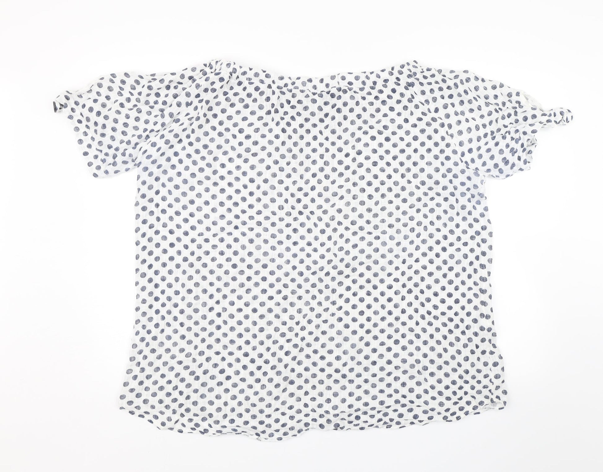 Izabel Womens White Polka Dot Basic Blouse Size 14