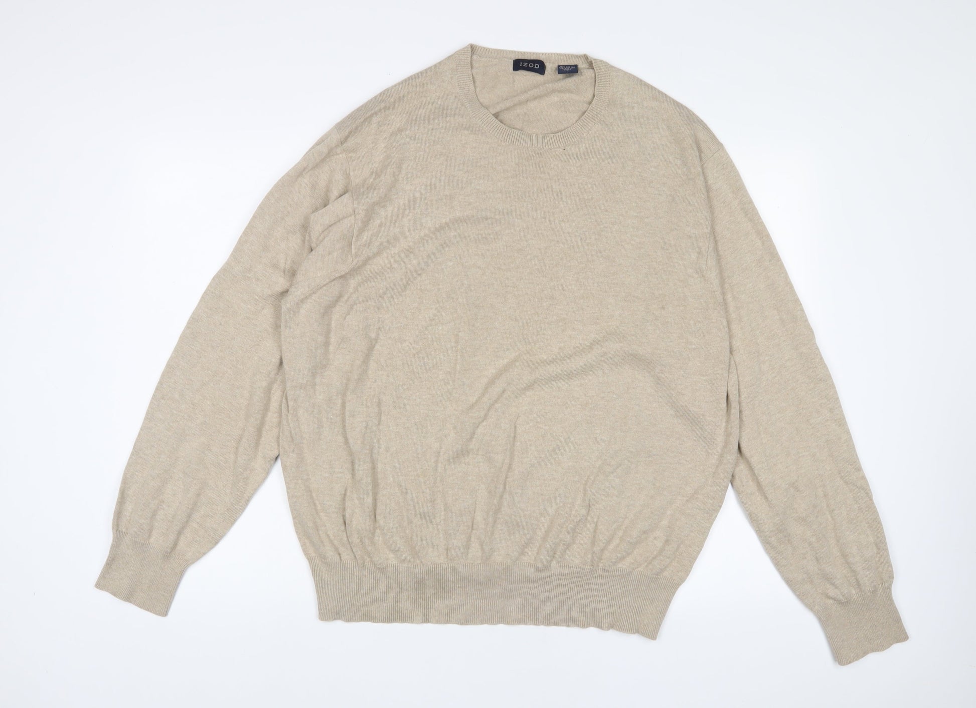 IZOD Mens Beige Crew Neck Cotton Pullover Jumper Size L Long Sleeve