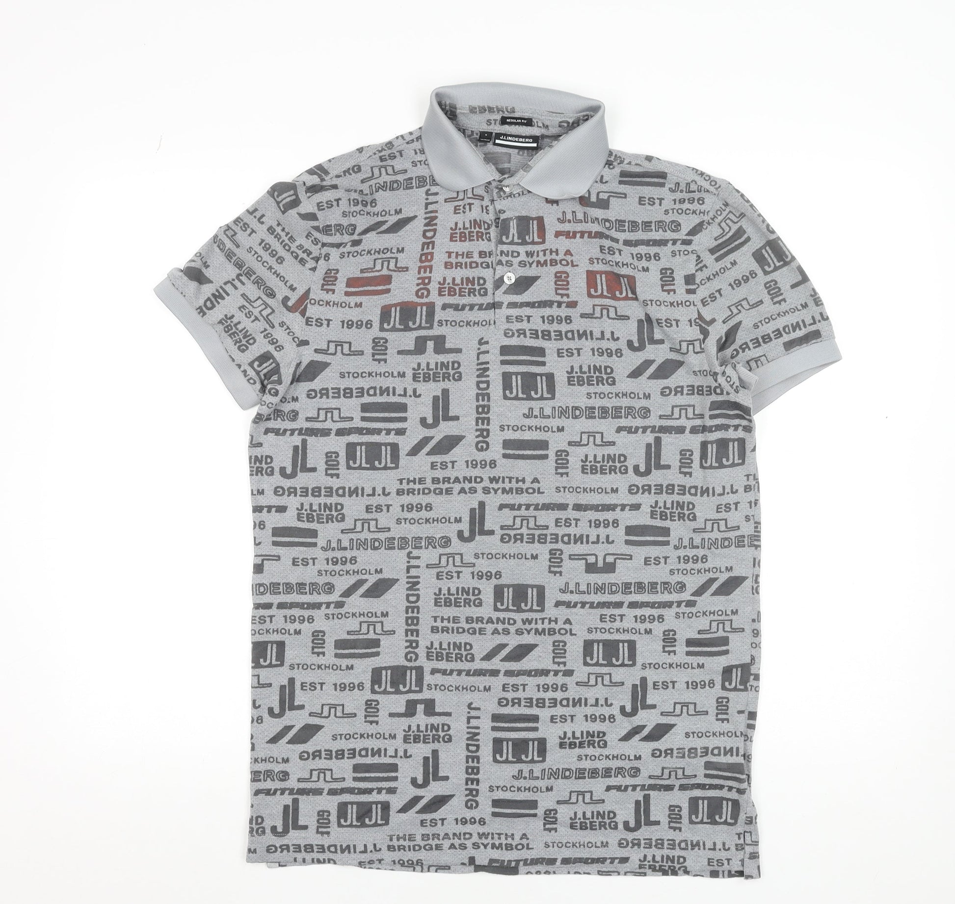 J.Lindeberg Men's Grey Regular Fit Golf Polo Shirt Size S