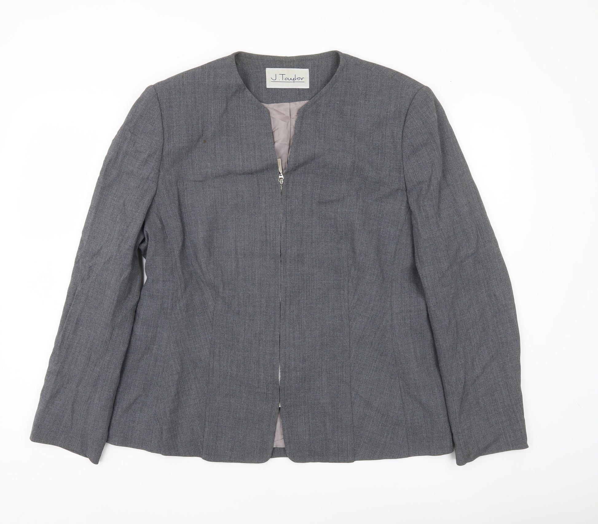 J Taylor Women’s Grey Zip Blazer Jacket Size 16 Wool Blend Workwear
