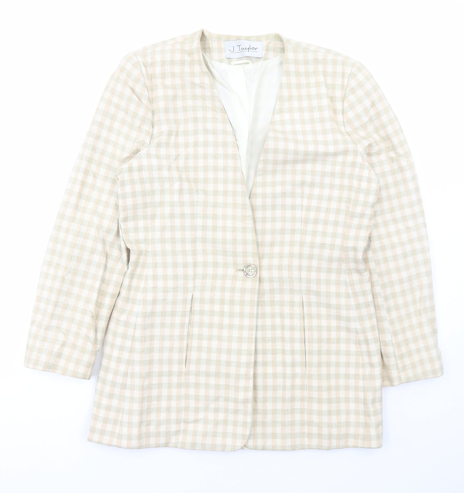 J Taylor Womens Beige Check Jacket Size 14 Button