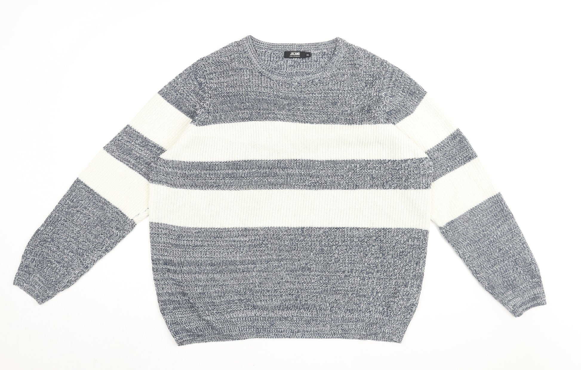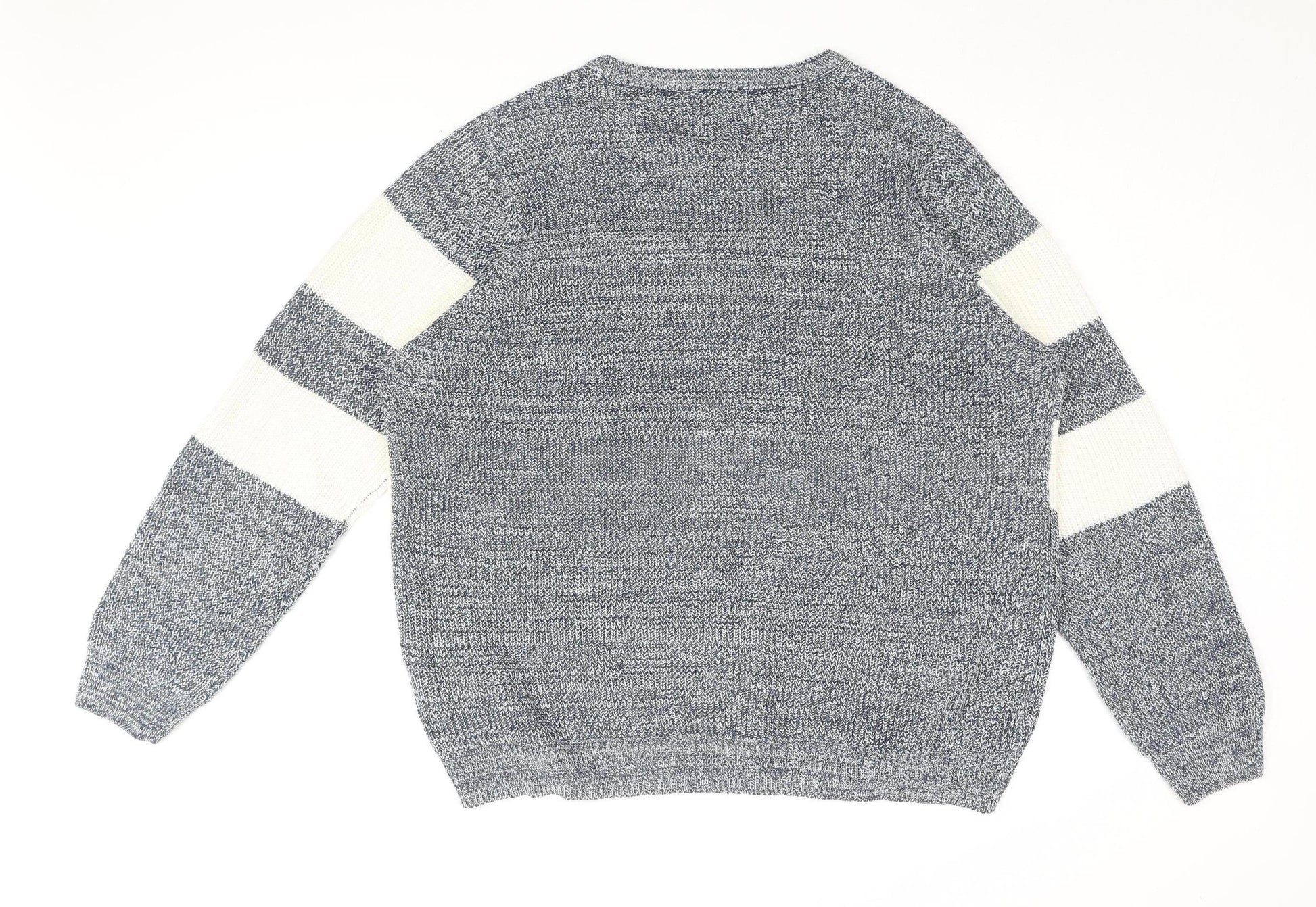 Jacamo Men Blue Striped Chunky-Knit Pullover 2XL