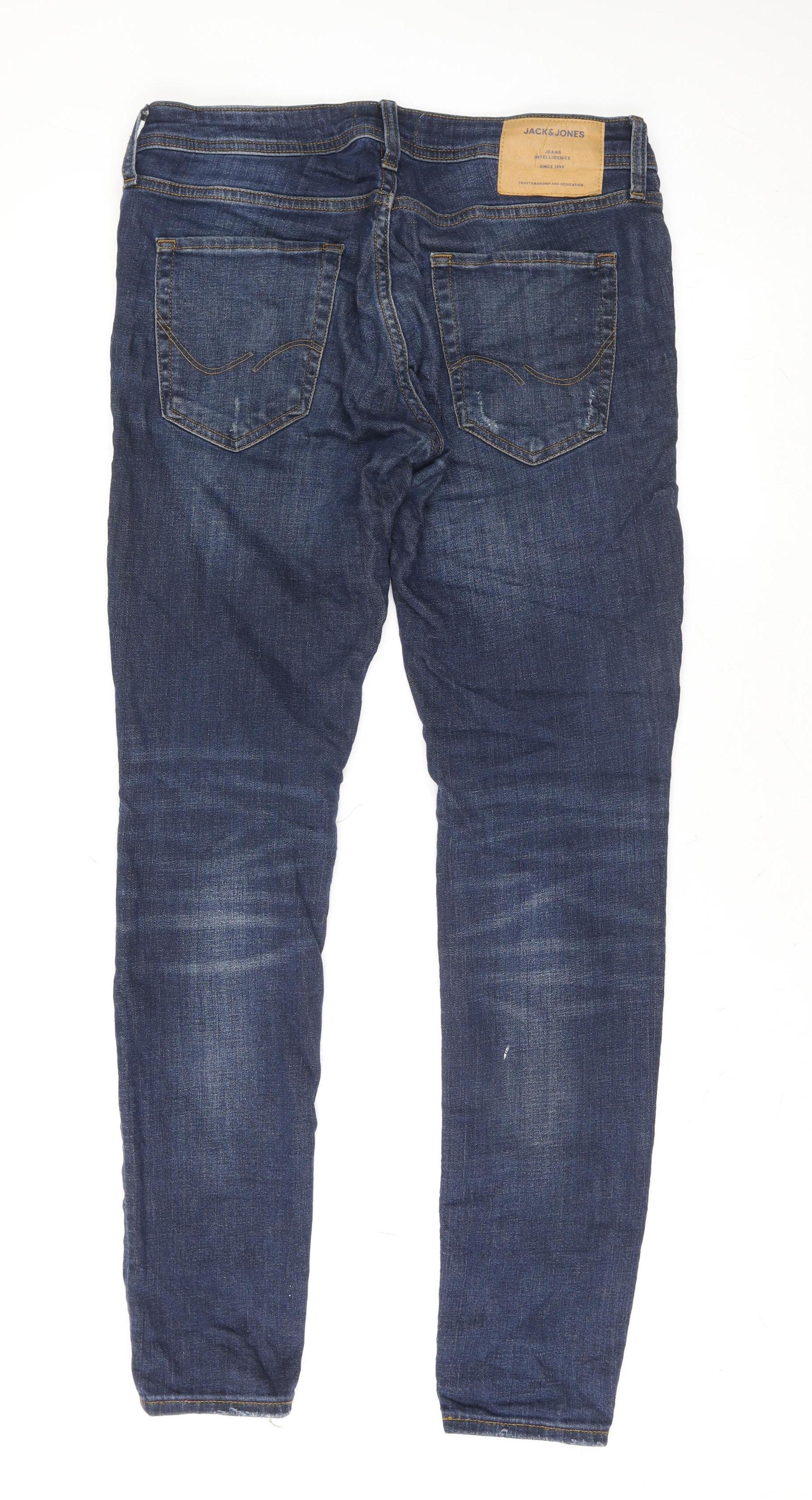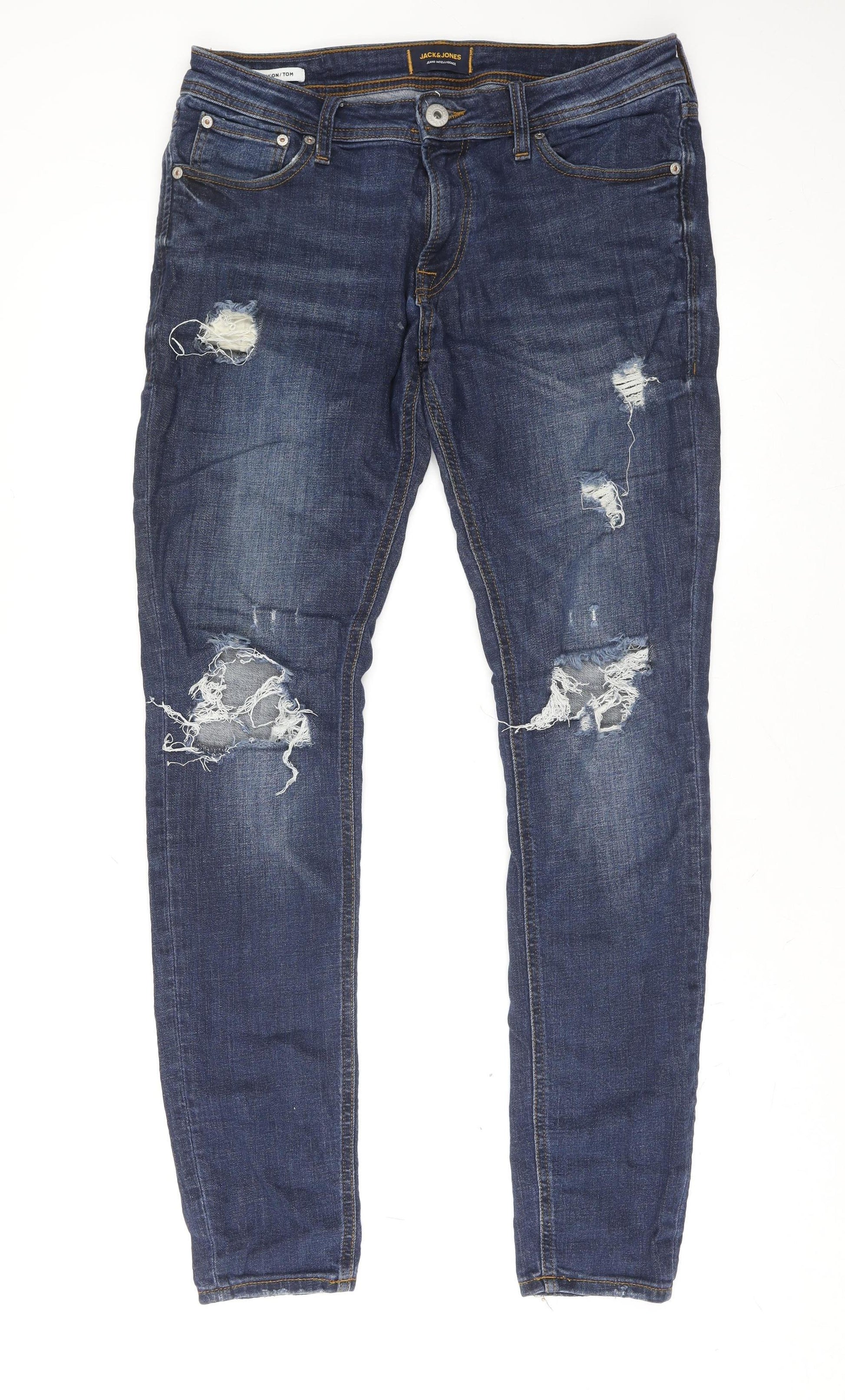 Jack & Jones Men Blue Slim Spray On Tom Skinny Distressed Jeans 32W 32L