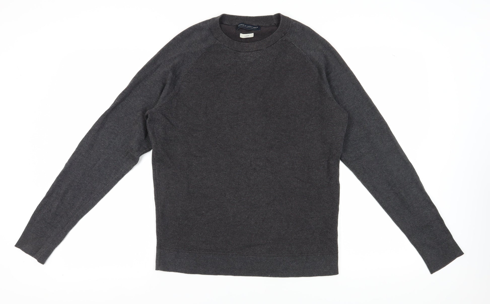 Jack & Jones Men Grey Cotton Pullover Jumper L