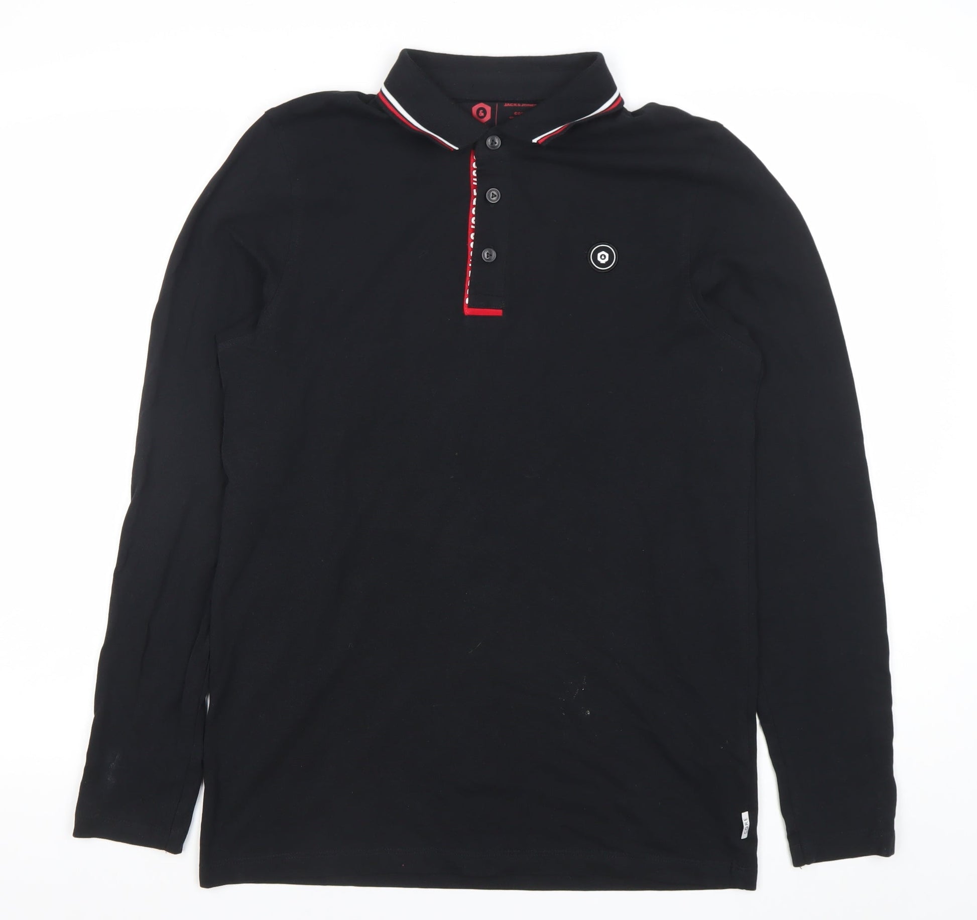 Jack & Jones Men’s Black Long Sleeve Polo Shirt Size M Cotton