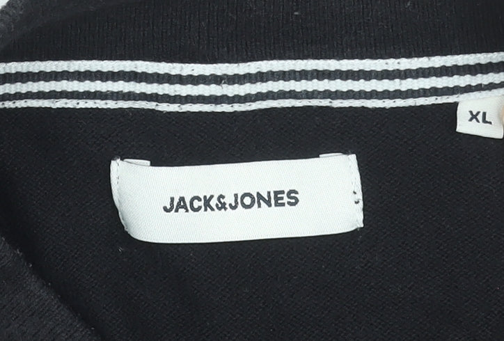 Jack & Jones Men’s Black XL Full Zip Cotton Knit Jumper