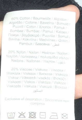 - Material Breakdown: 60% Cotton 20% Nylon 20% Viscose