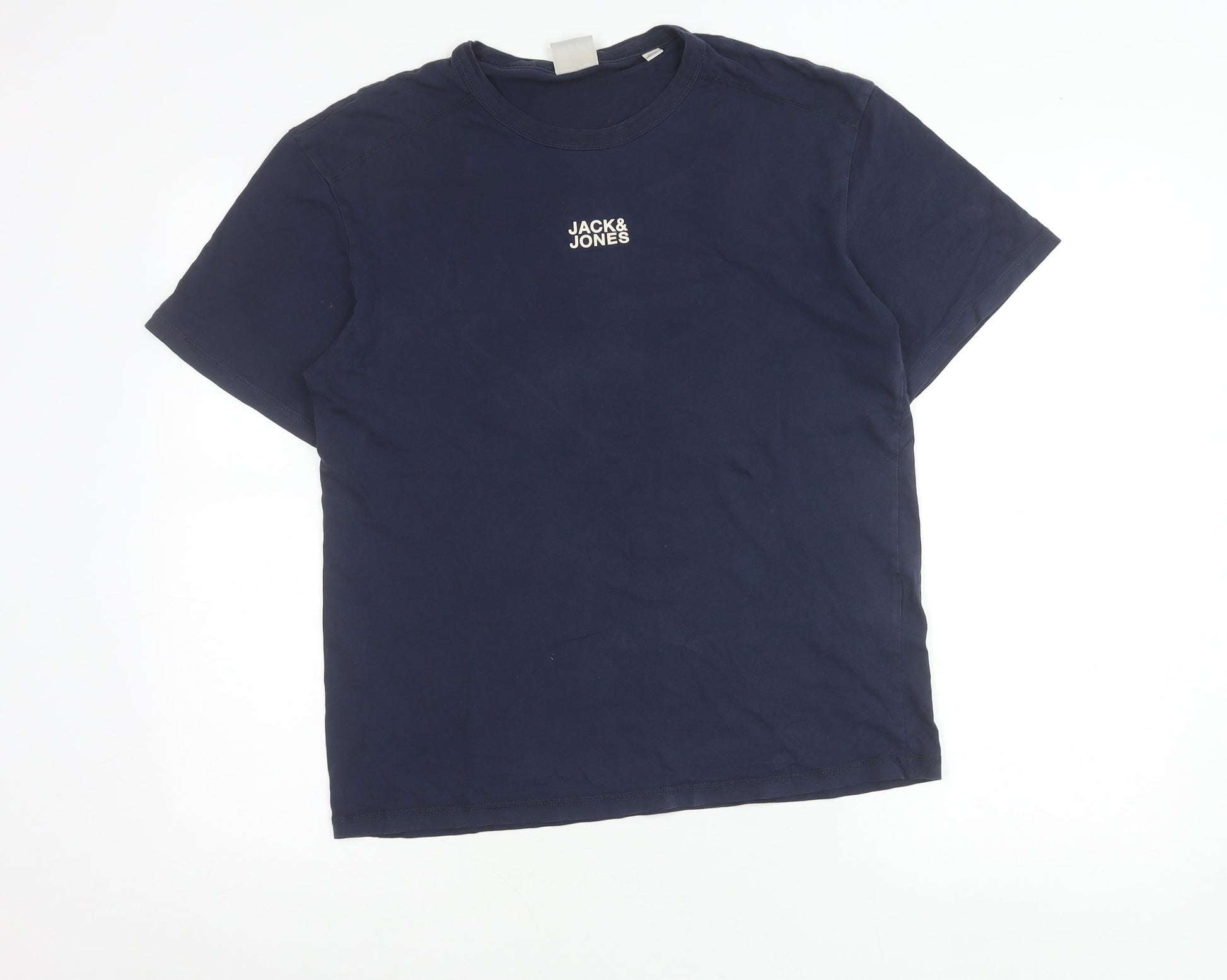 Jack & Jones Men’s Blue Cotton Crew Neck Logo T-Shirt Size M