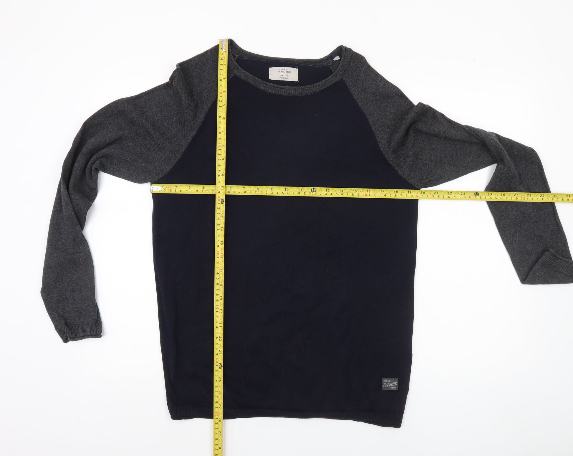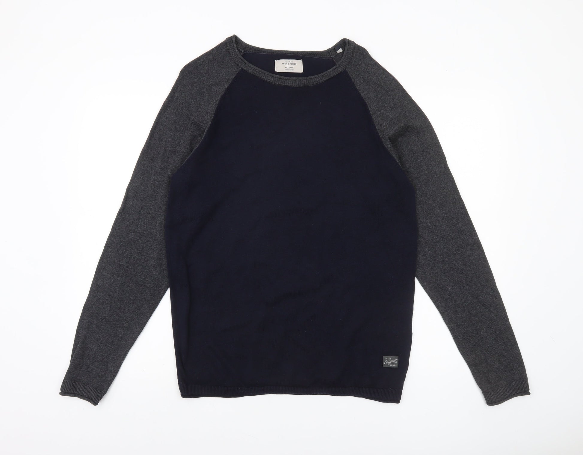 Jack & Jones Men’s Blue Grey Cotton Crew Neck Jumper M