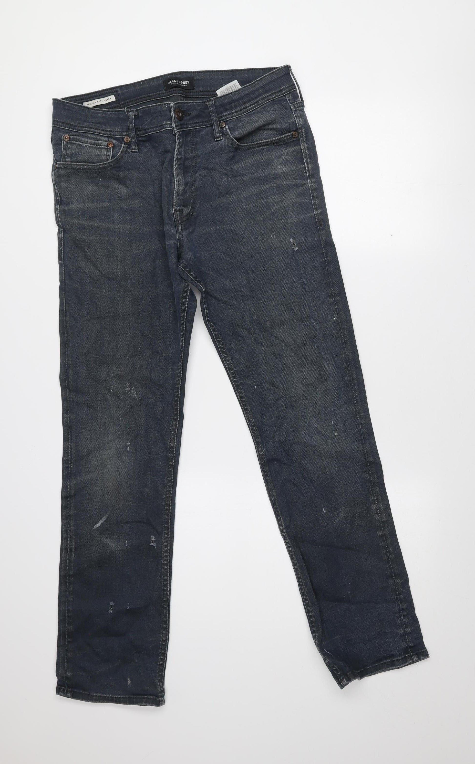 Jack & Jones Men’s Blue Regular Fit Clark Jeans 32x32 Dark Wash Denim