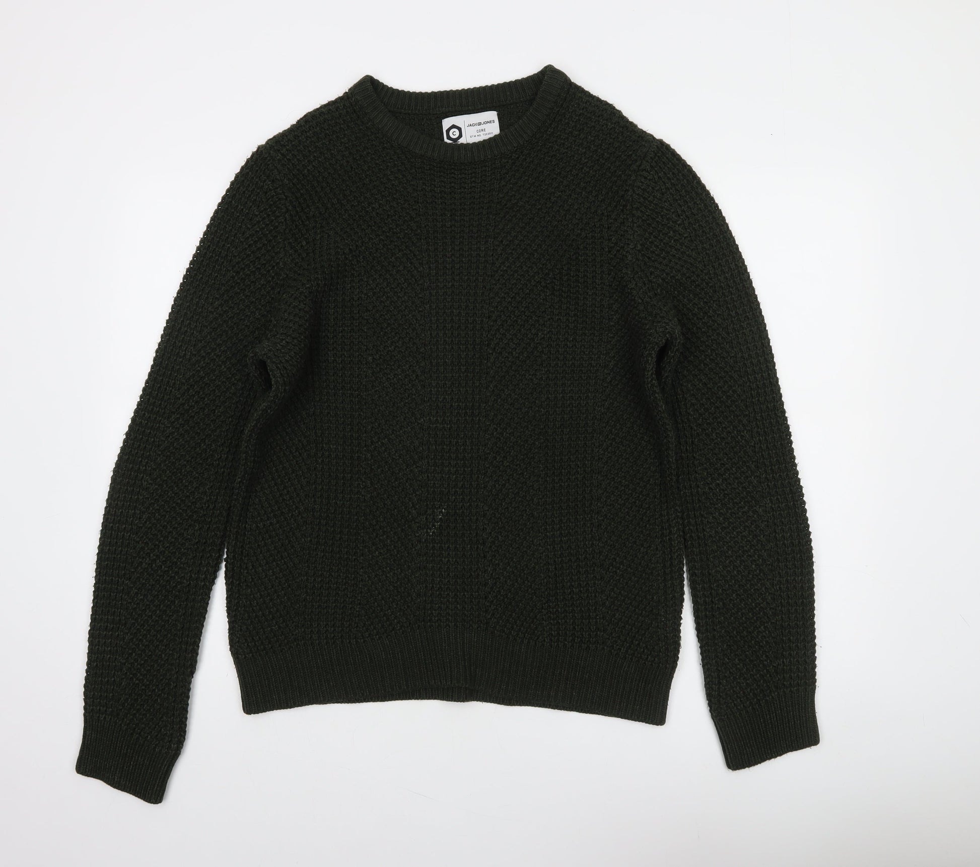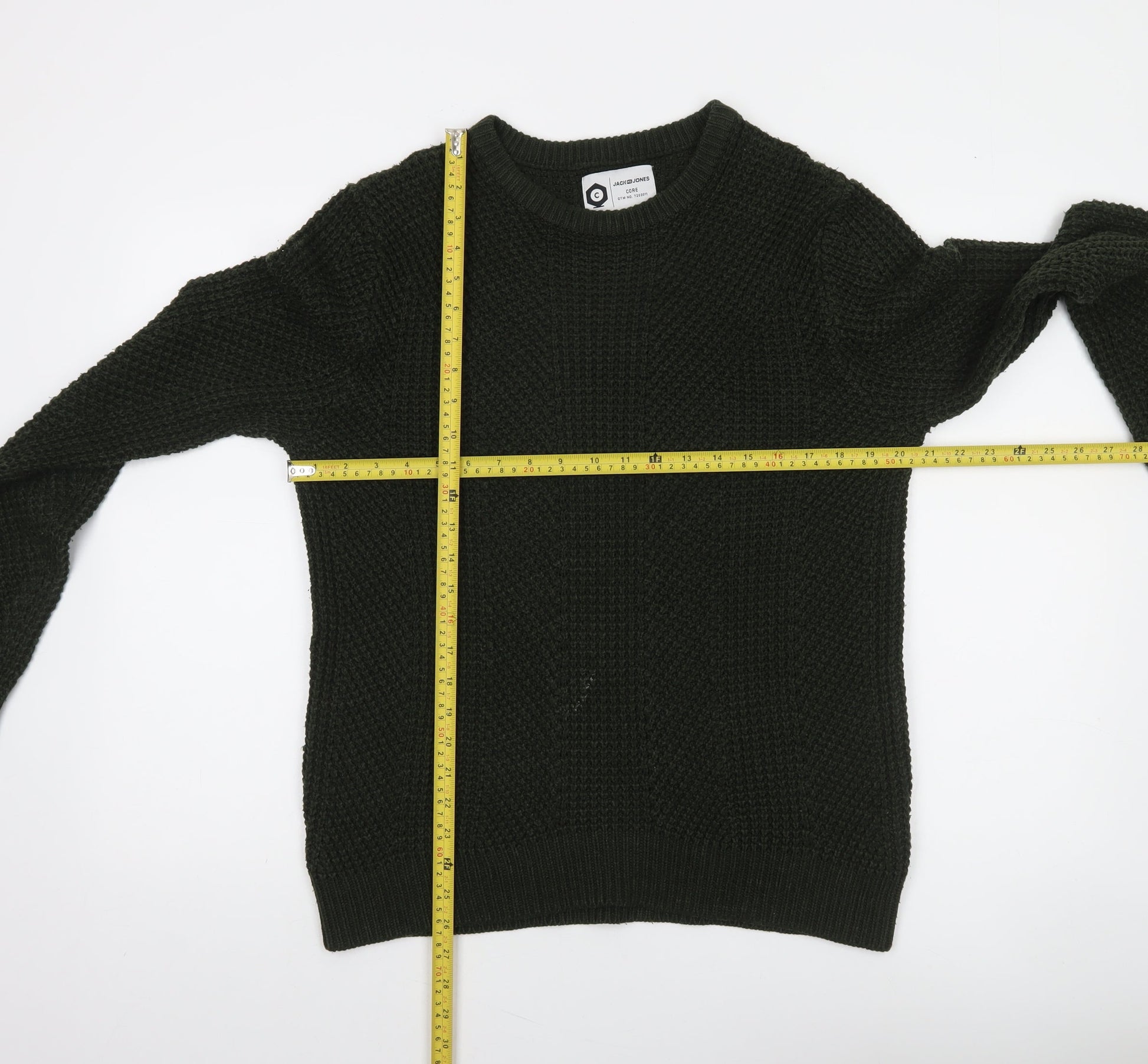 Jack & Jones Men’s Green Chunky Knit Crew Neck Cotton Pullover Jumper L