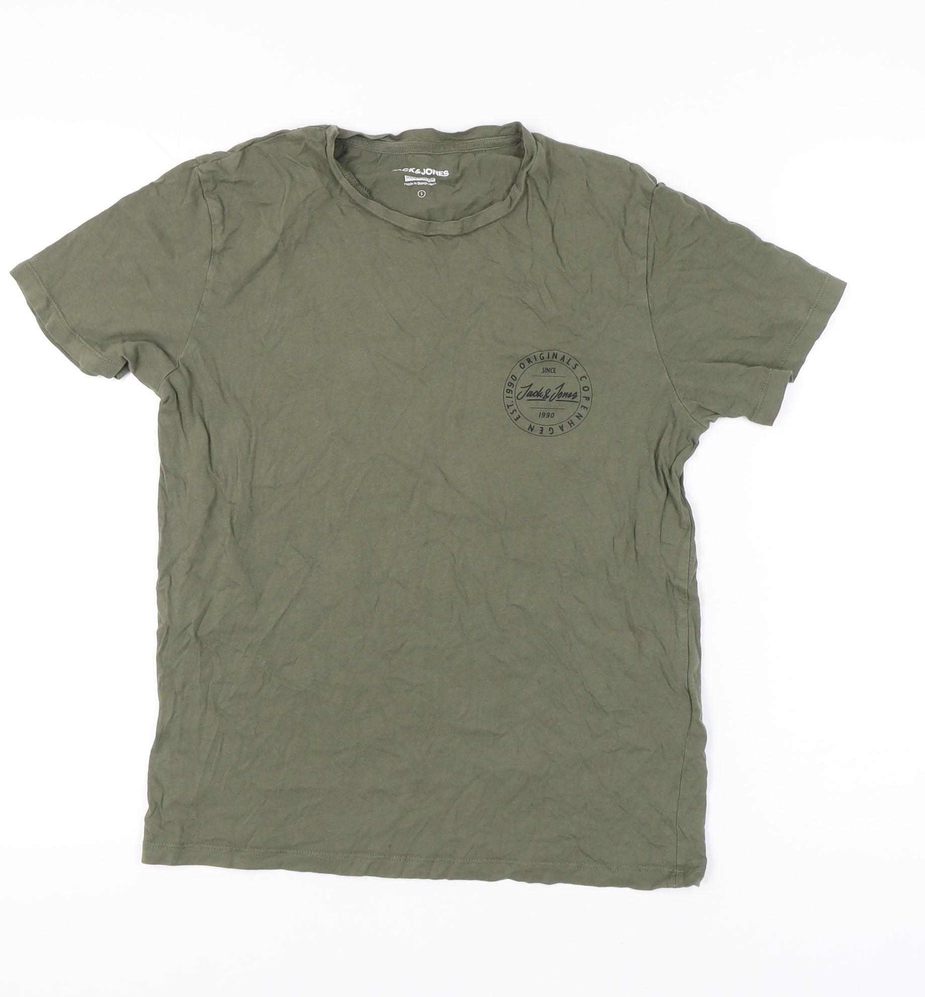 Jack & Jones Men’s Green Small Regular Fit Cotton Crew Neck T-Shirt