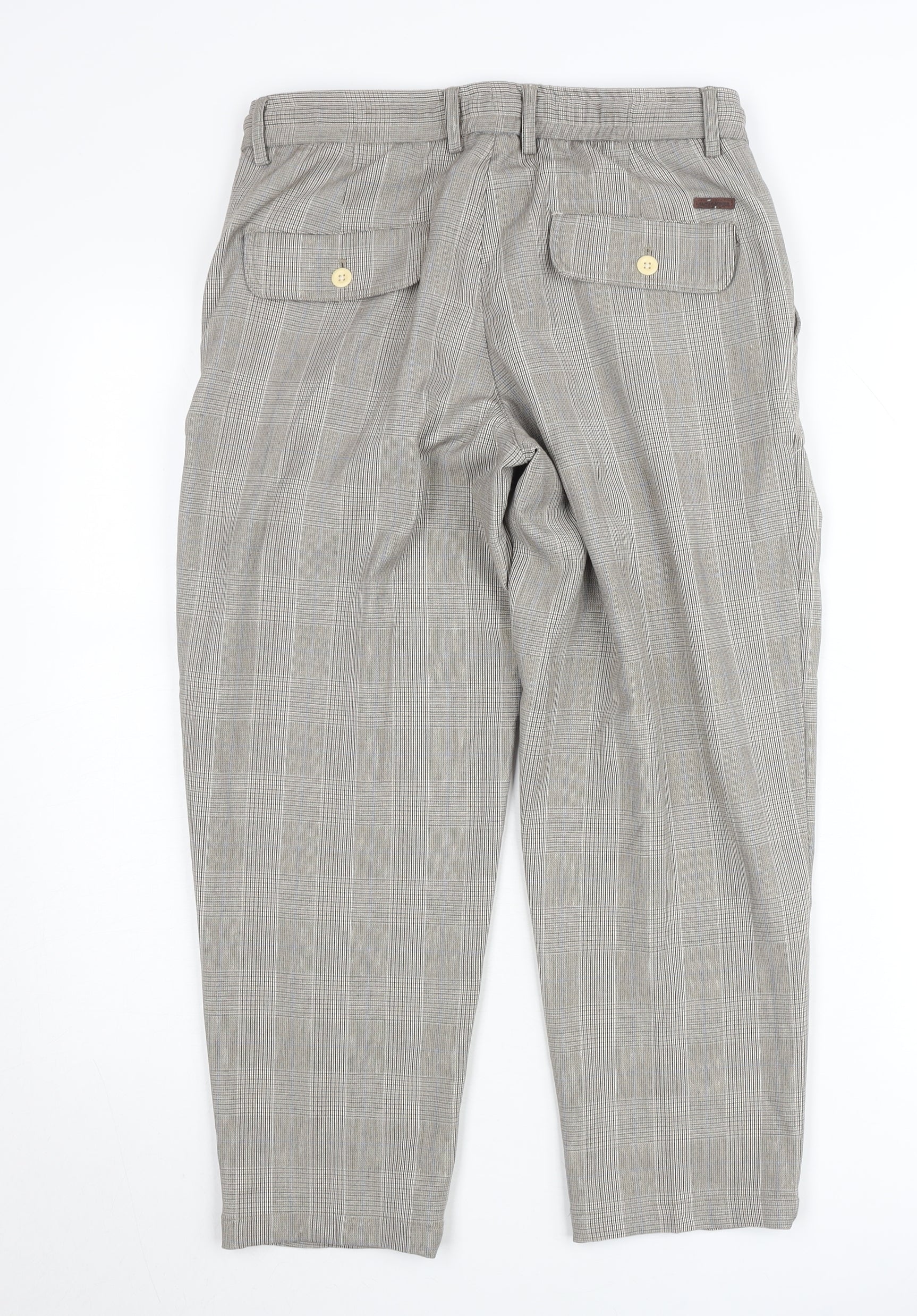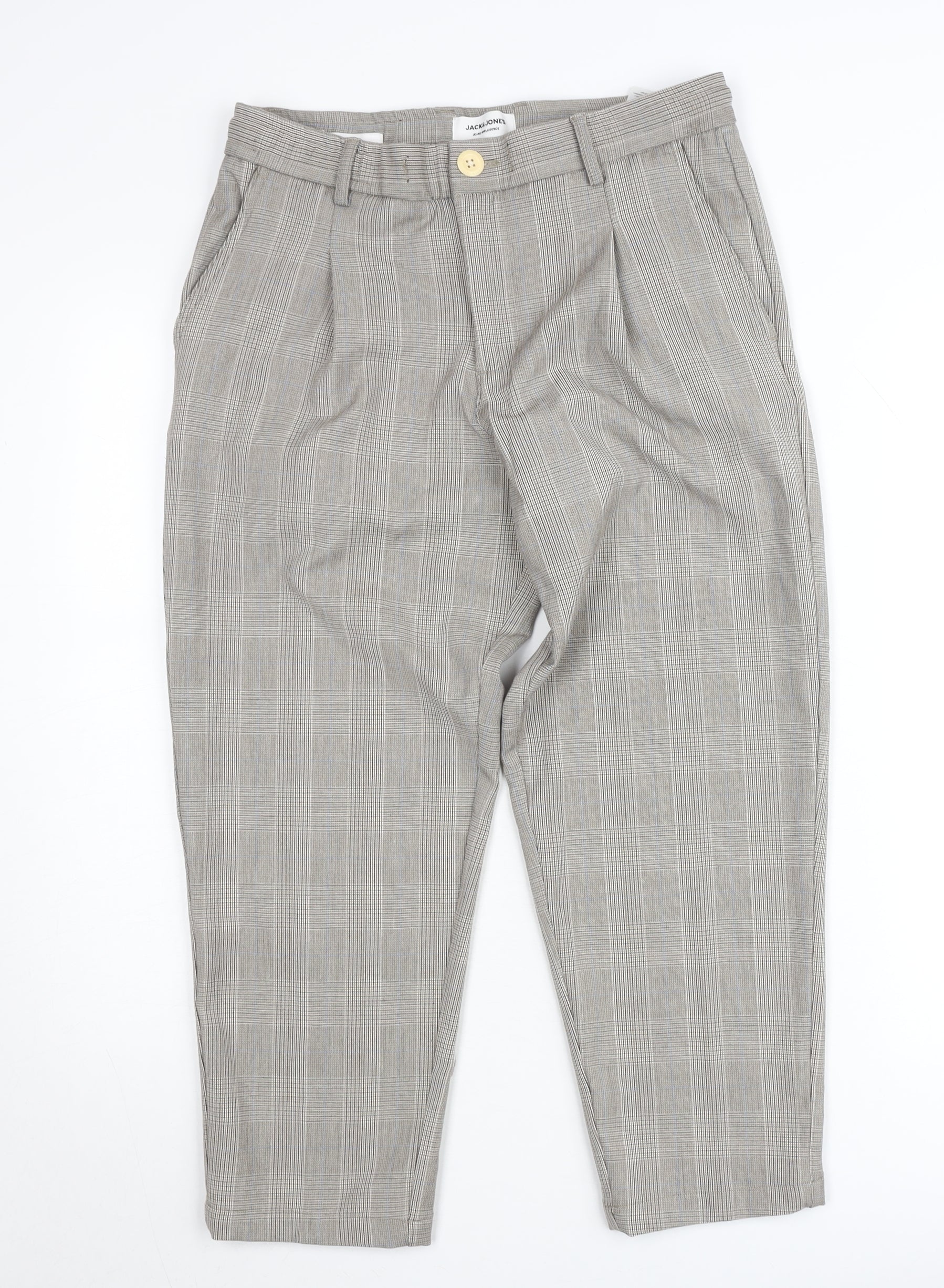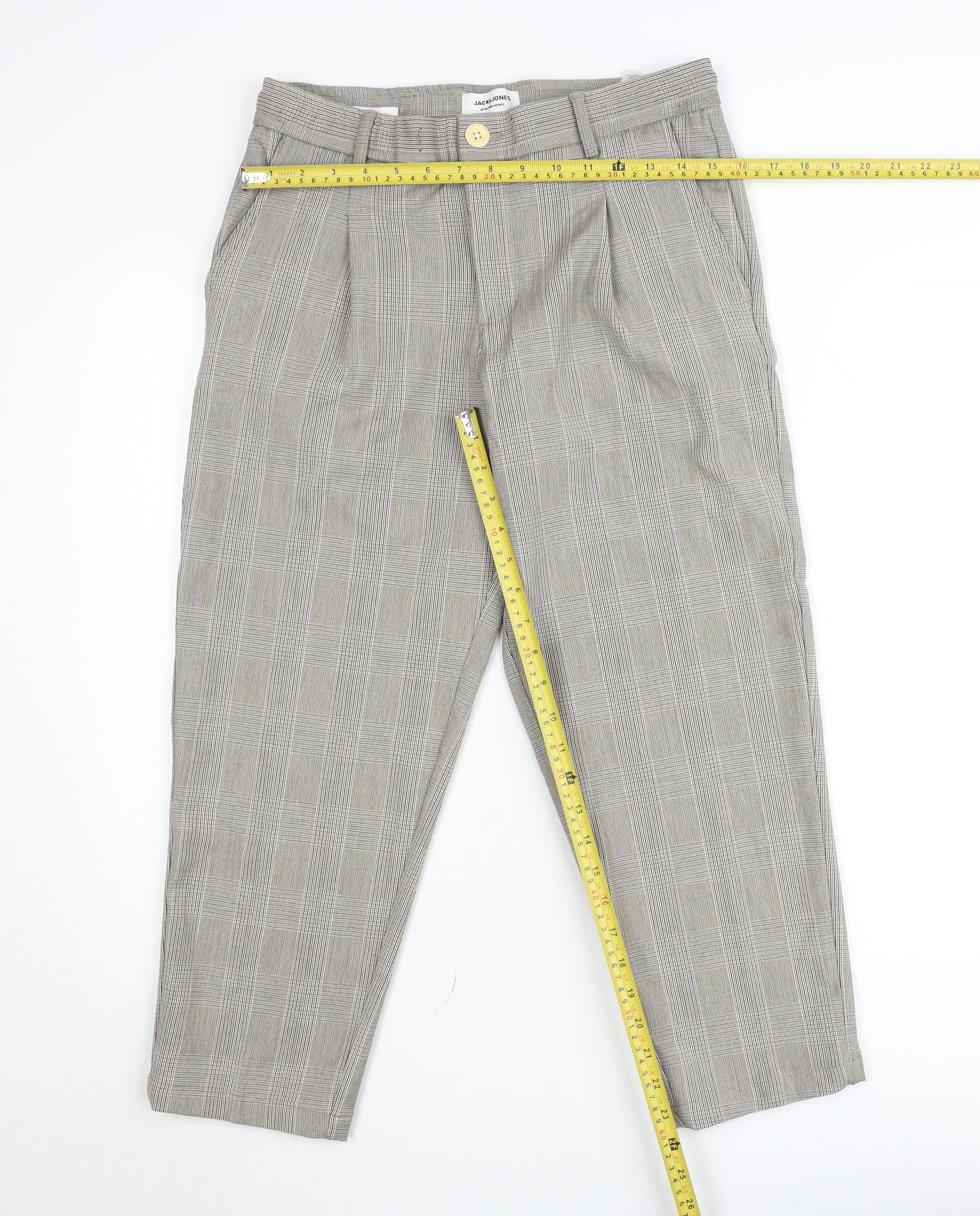 Jack & Jones Men’s Grey Check Chino Trousers Size M Regular Fit