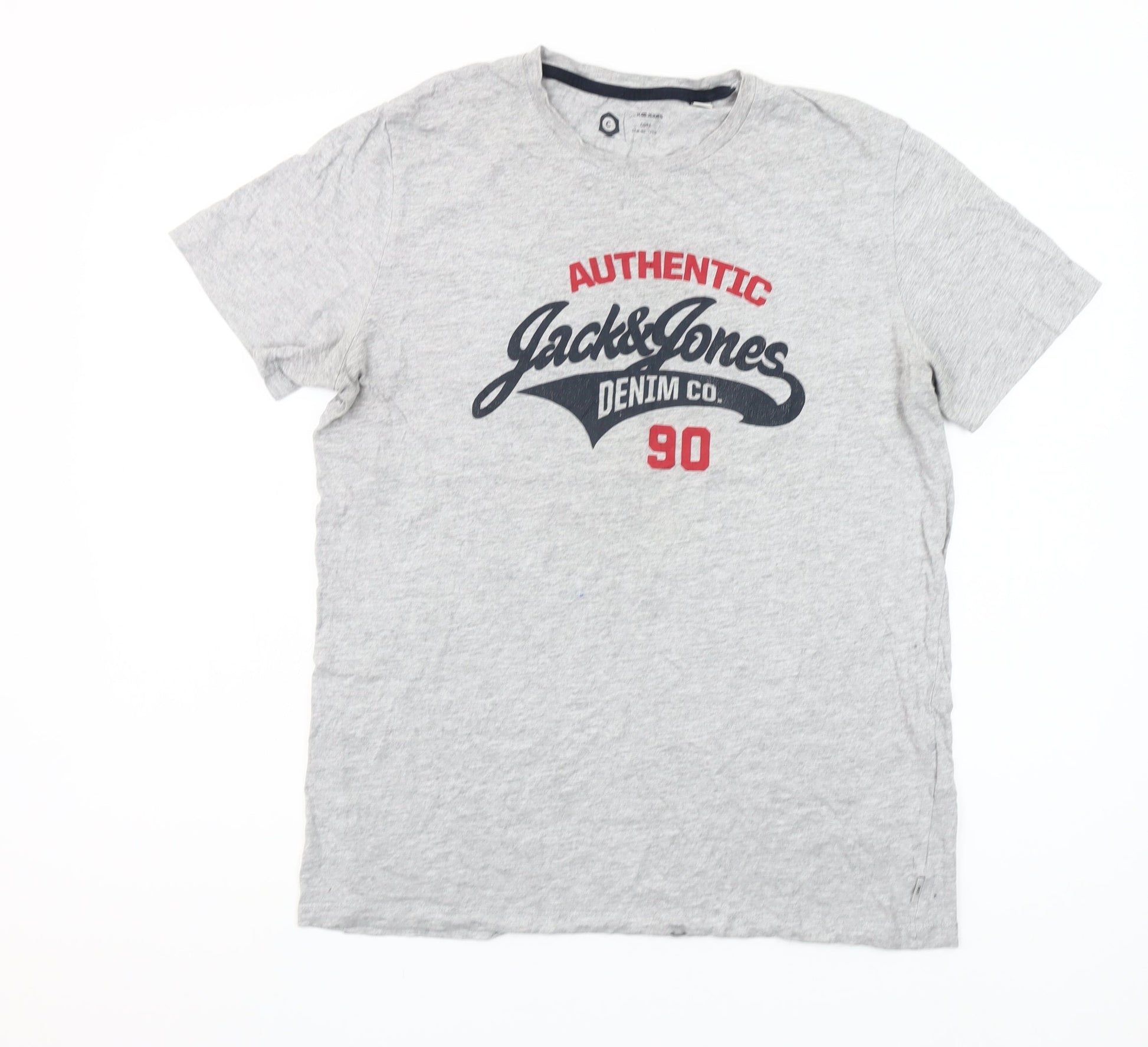 Jack & Jones Men’s Grey Graphic Crew Neck Short Sleeve T-Shirt Size L