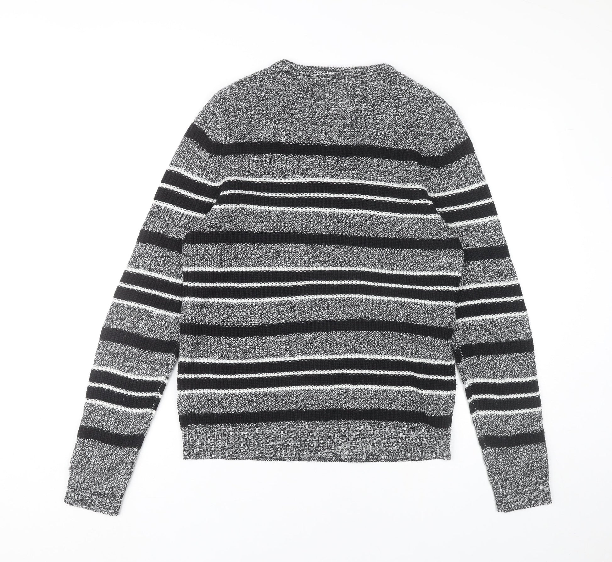 Jack & Jones Men’s Grey Striped Pullover Jumper Size S Crew Neck Knit