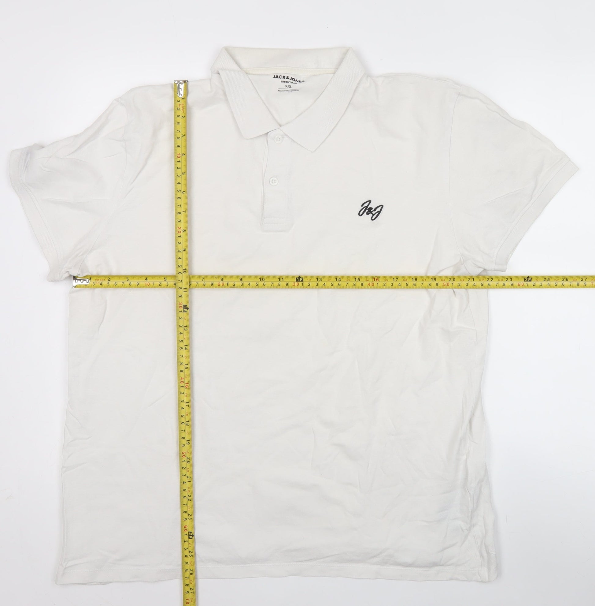 Jack & Jones Men’s White 2XL Short Sleeve Cotton Polo Shirt