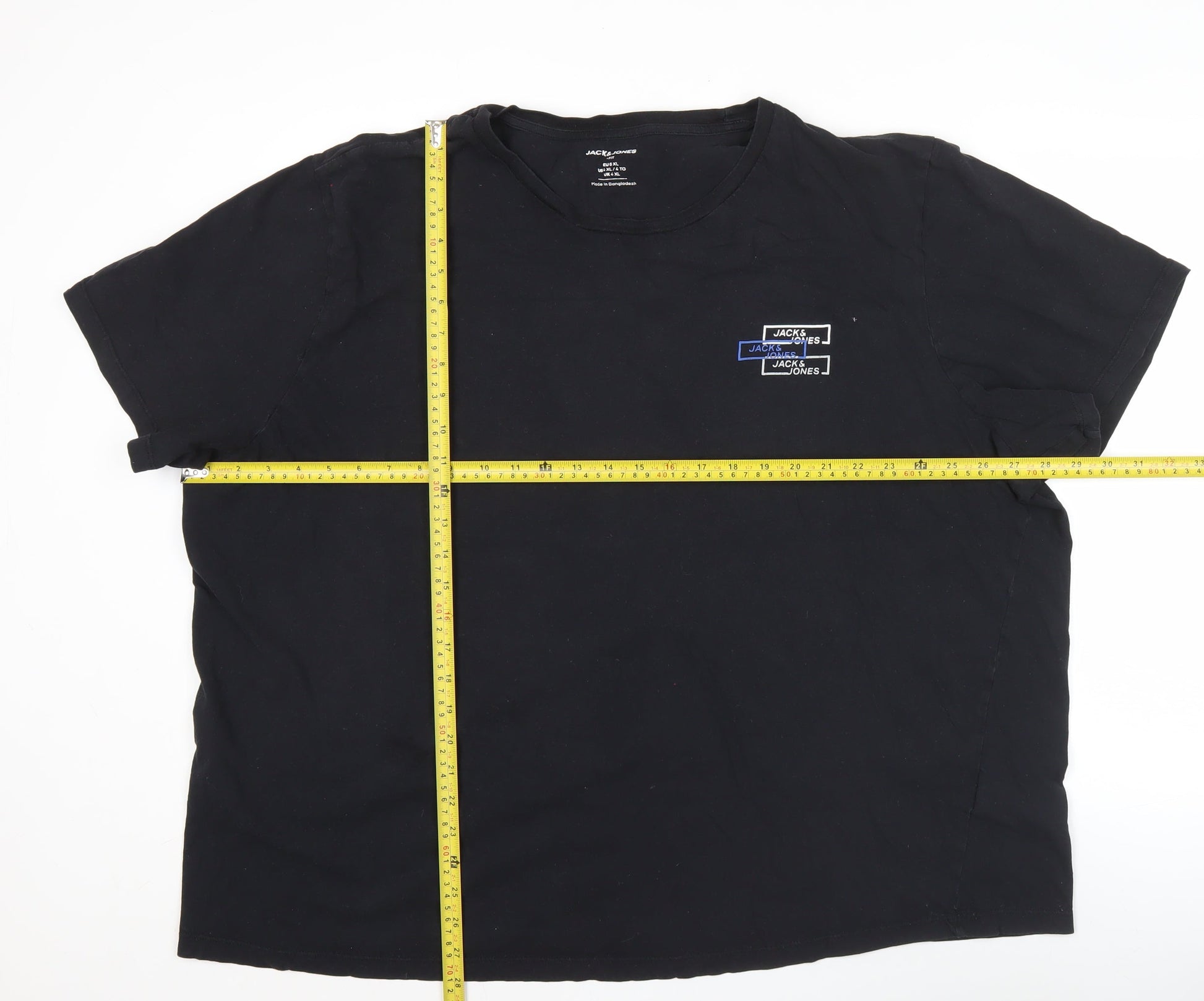 Jack & Jones Mens Black 4XL Logo Graphic Cotton T-Shirt