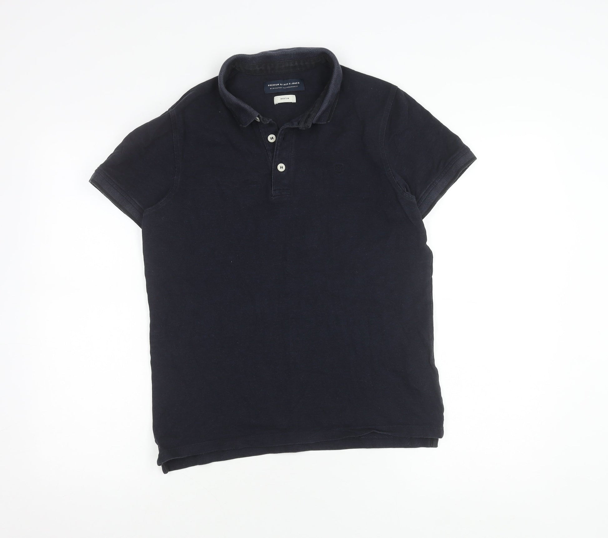 Jack & Jones Men's Black Cotton Polo, Medium Size