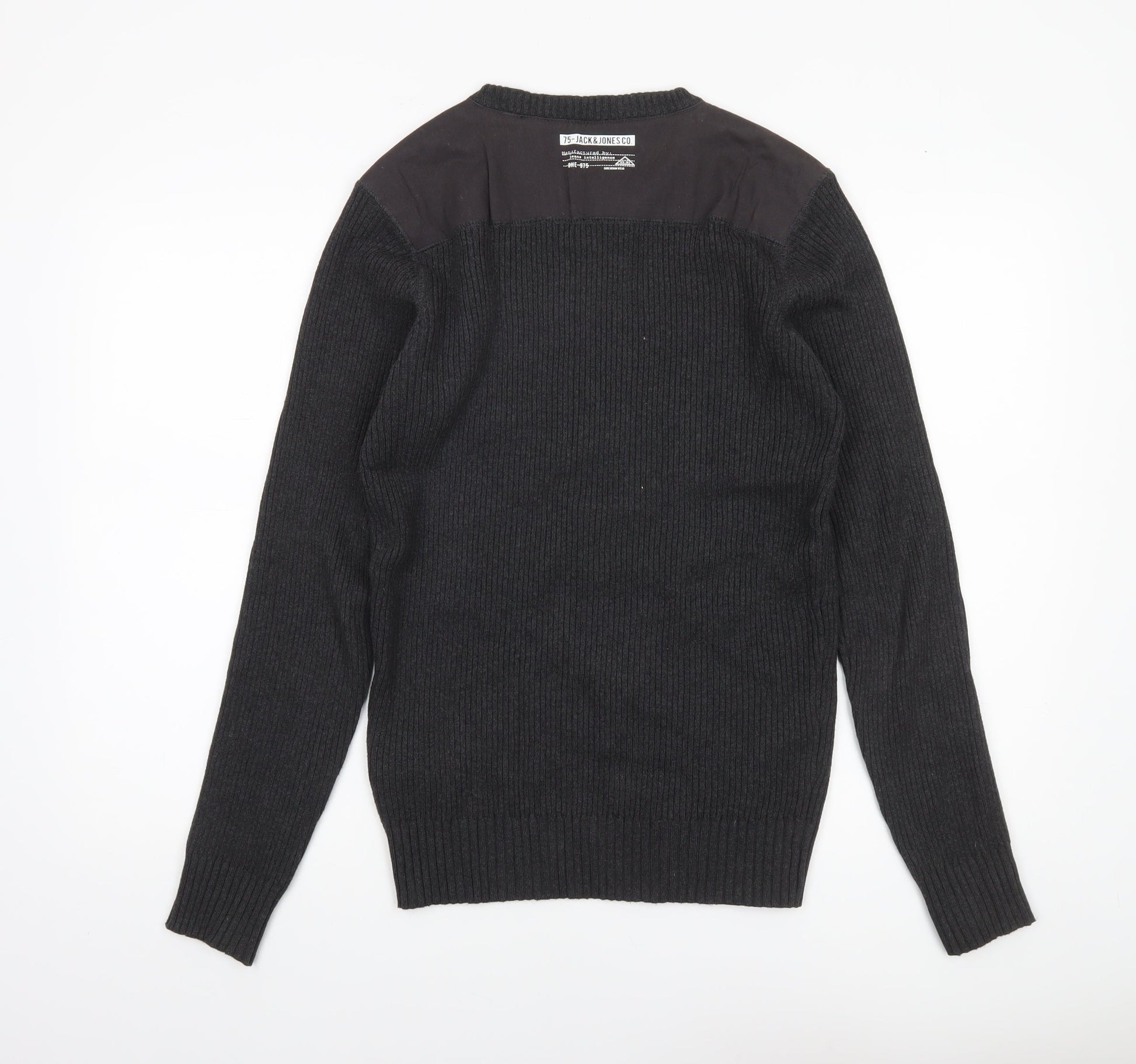 Jack & Jones Mens Black Crew Neck Ribbed Knit Jumper Size M