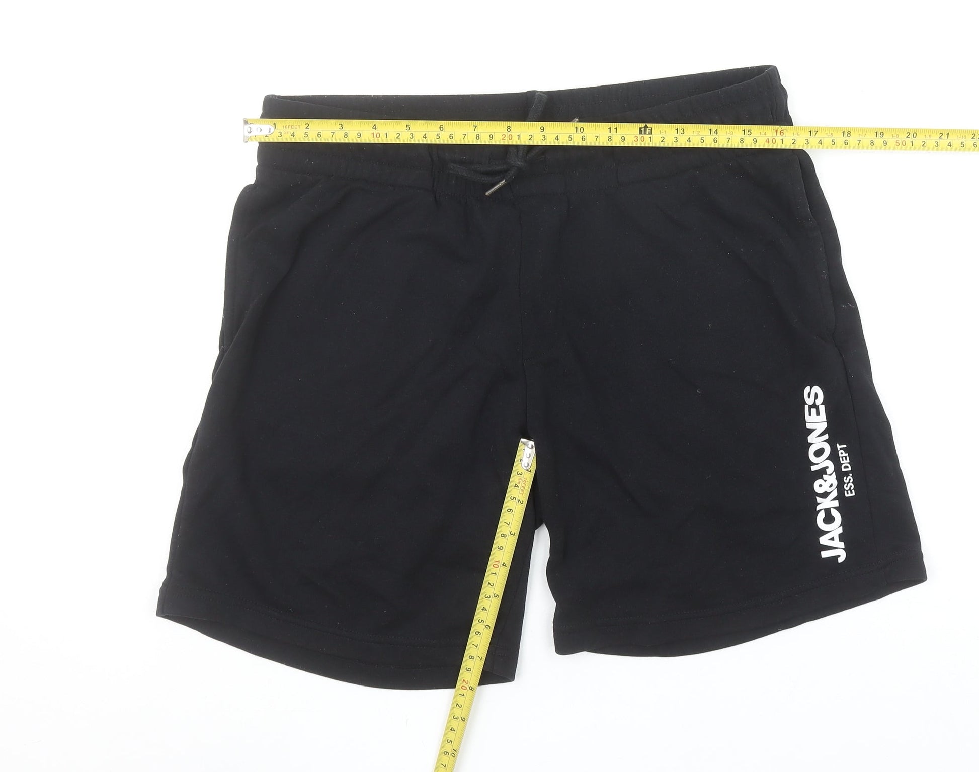 Jack & Jones Mens Black Sweat Shorts M Casual Drawstring Logo