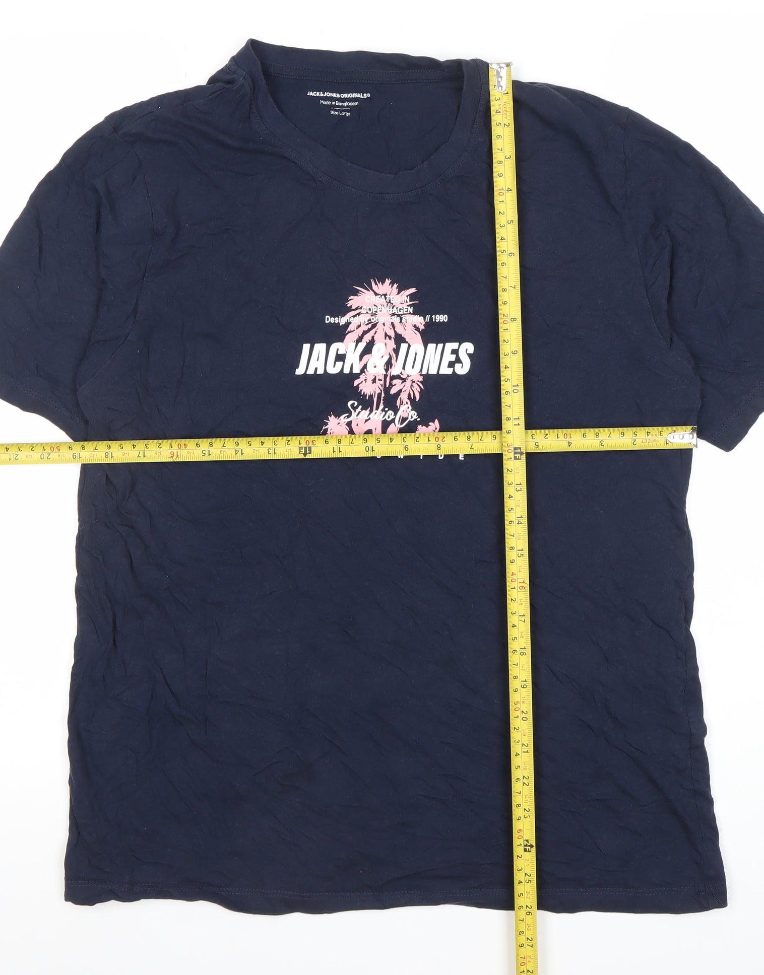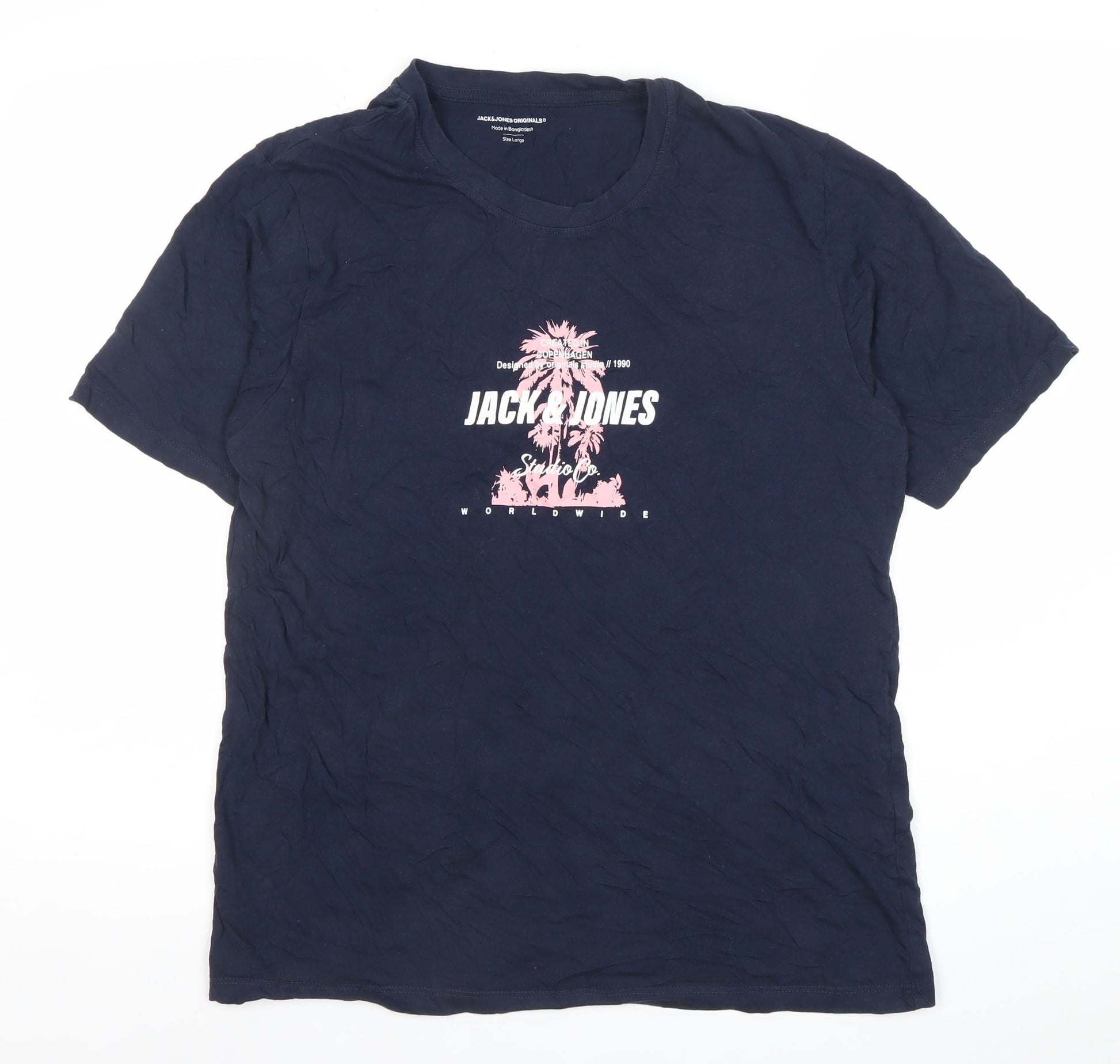 Jack & Jones Mens Blue Graphic Print Cotton T-Shirt Size L