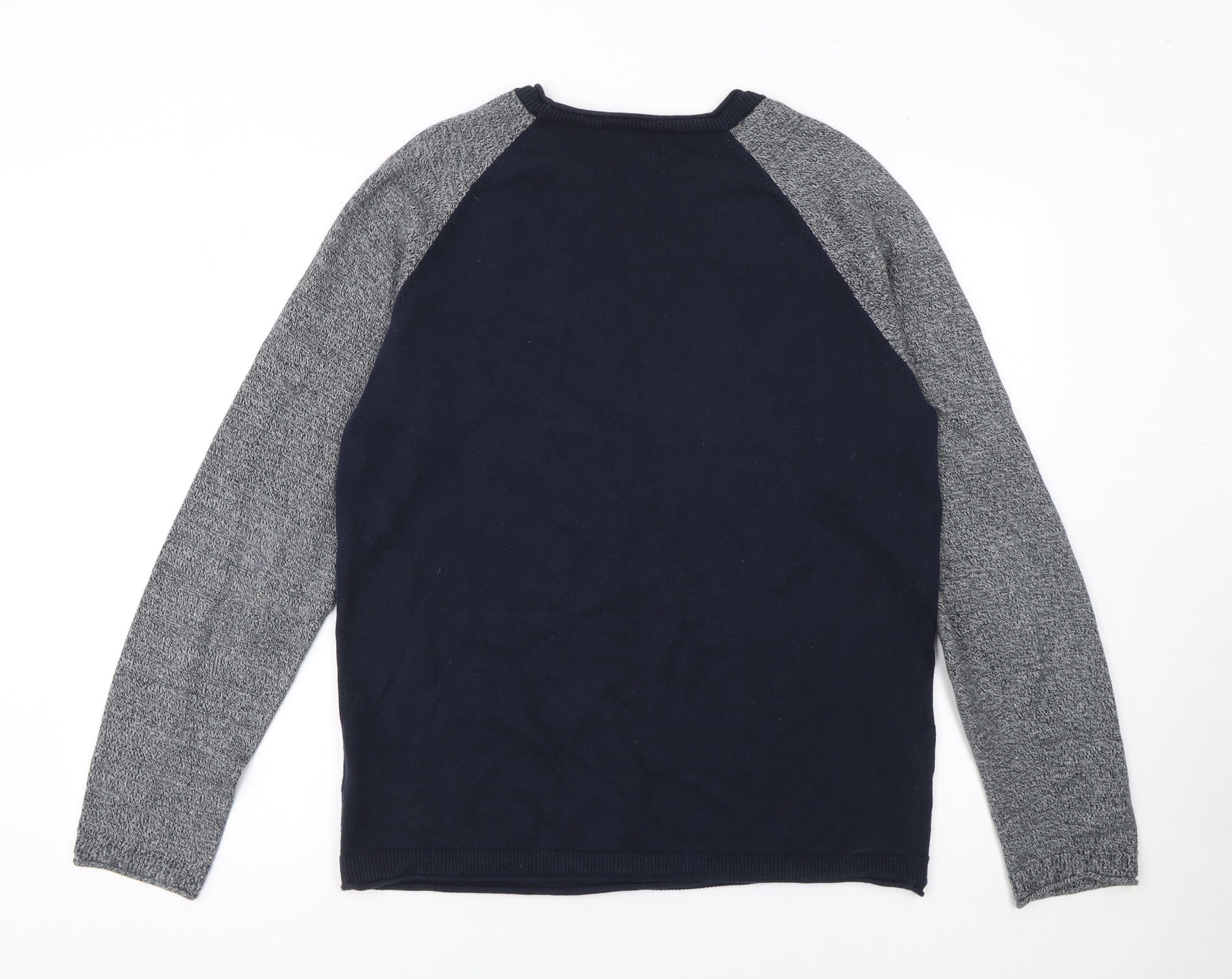 Jack & Jones Men's Blue Grey Cotton Crew Neck Pullover Jumper Medium