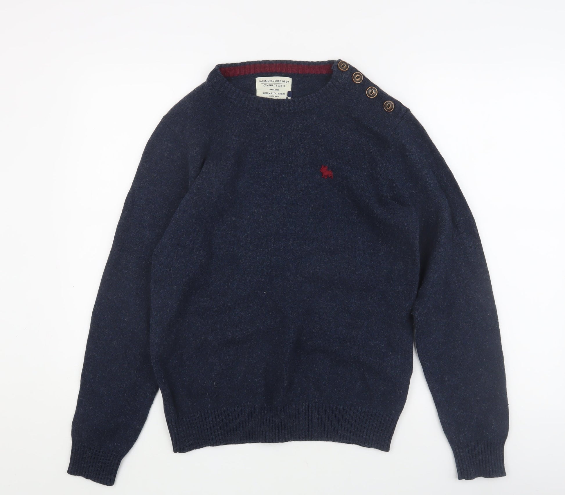 Jack & Jones Men's Blue Pullover Jumper M, Button Accent
