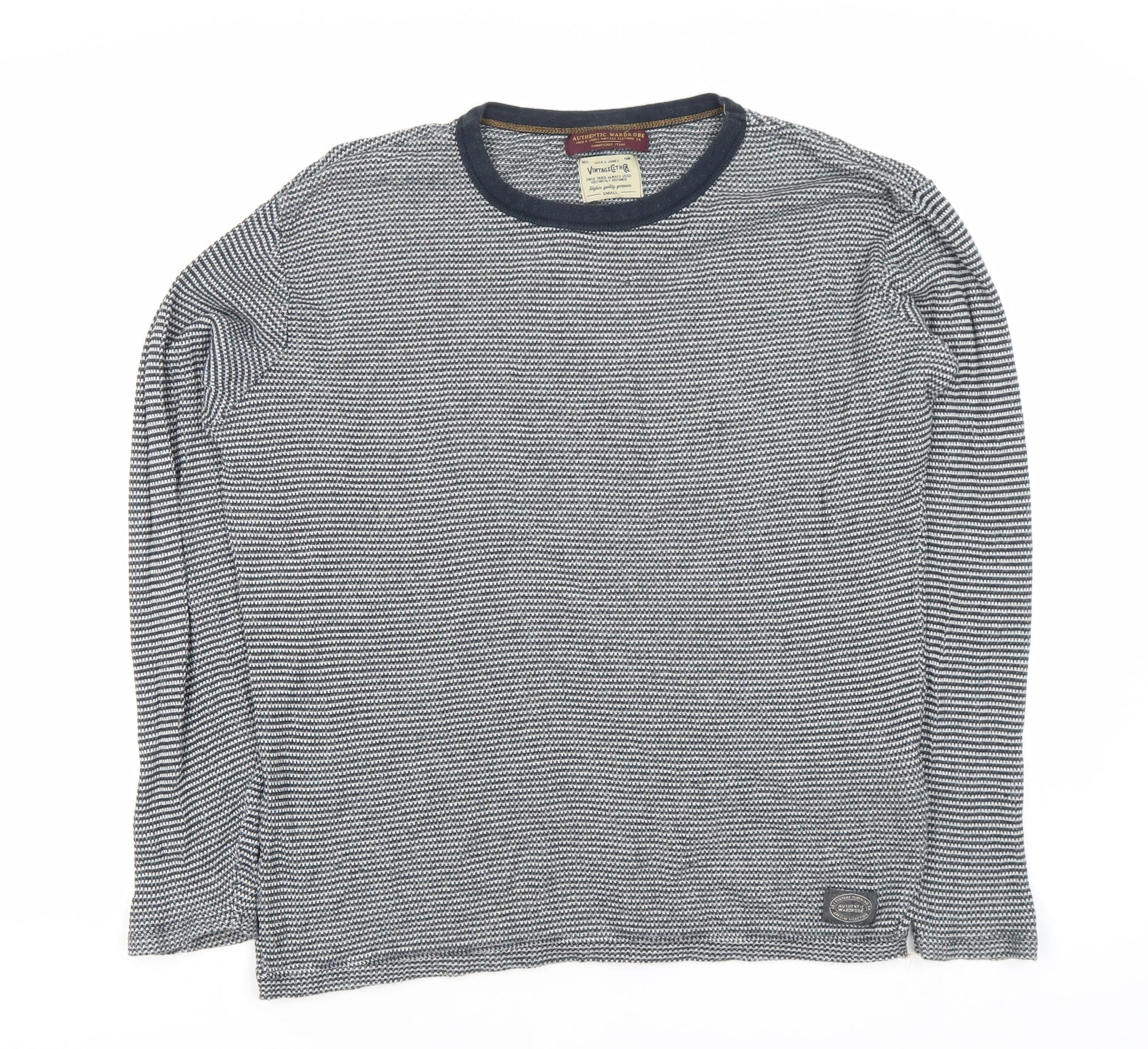 Jack & Jones Men's Blue Striped Pullover Jumper - Small