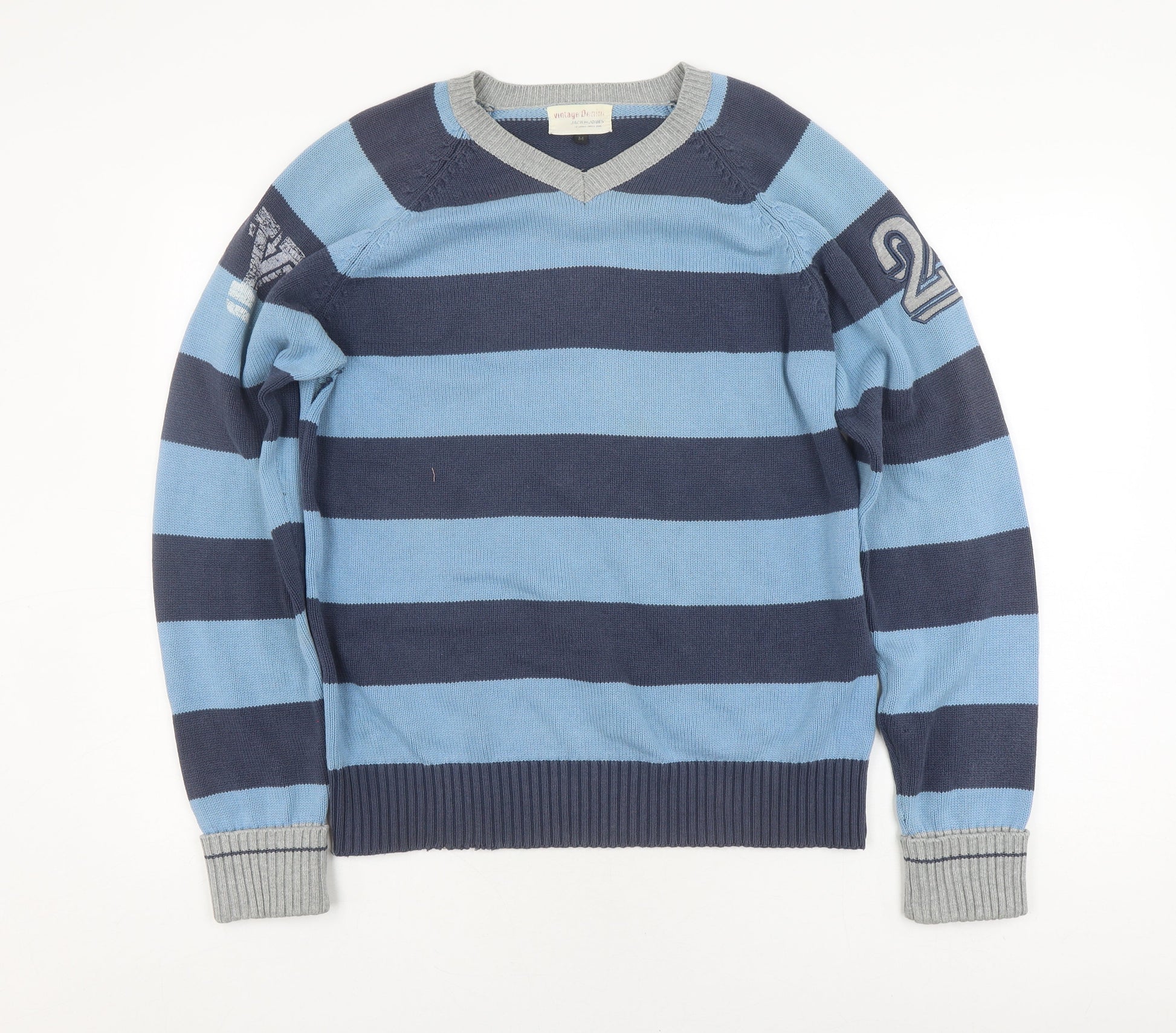 Jack & Jones Men's Blue Striped Pullover Knit Jumper
