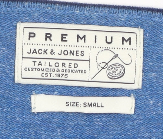 Jack & Jones Men's Blue V-Neck Cotton Pullover Jumper S