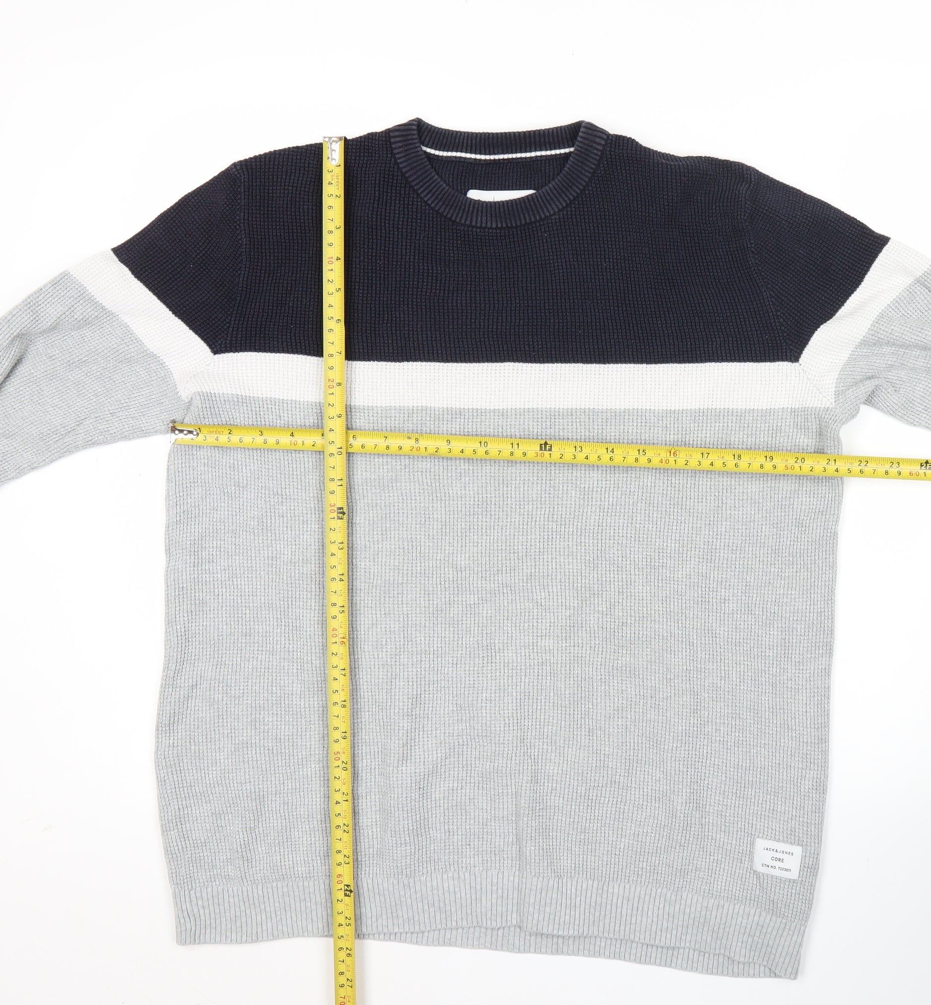 Jack & Jones Mens Grey & Black Striped Cotton Pullover Jumper L