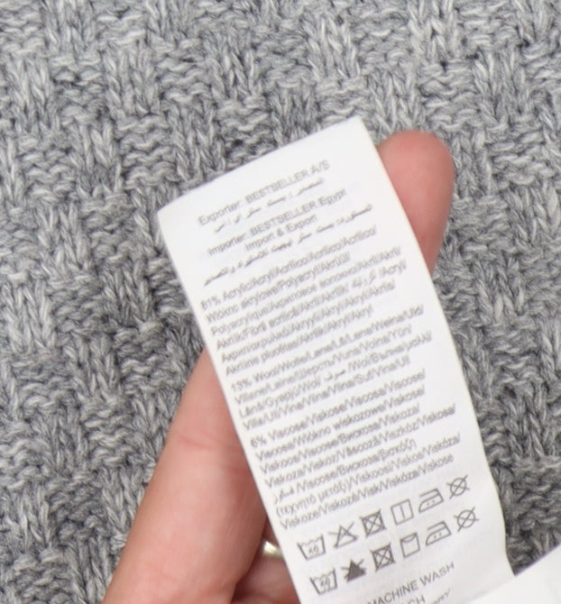 Jack & Jones Men's Grey Cable-Knit Pullover, Size S