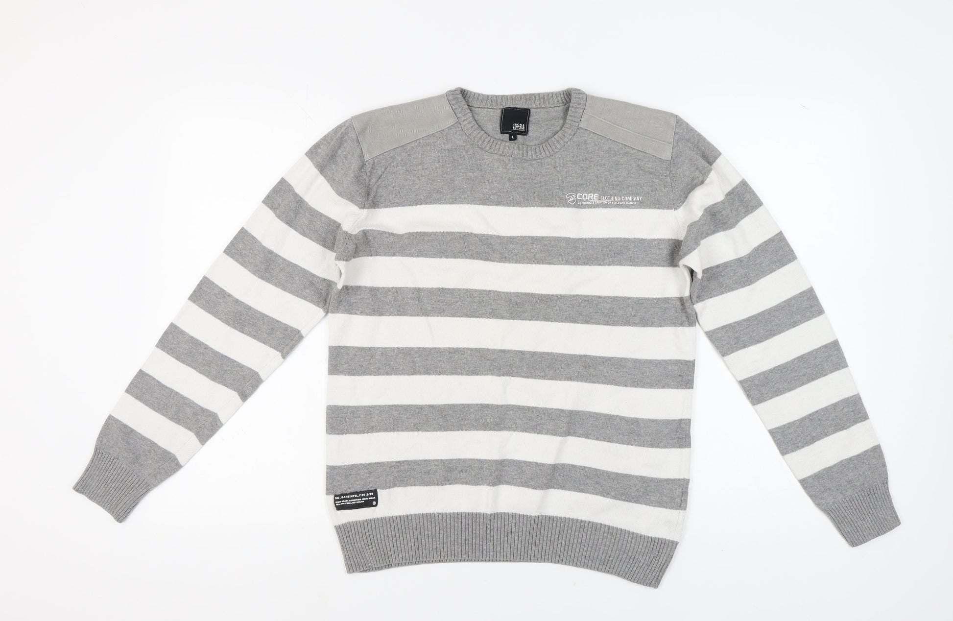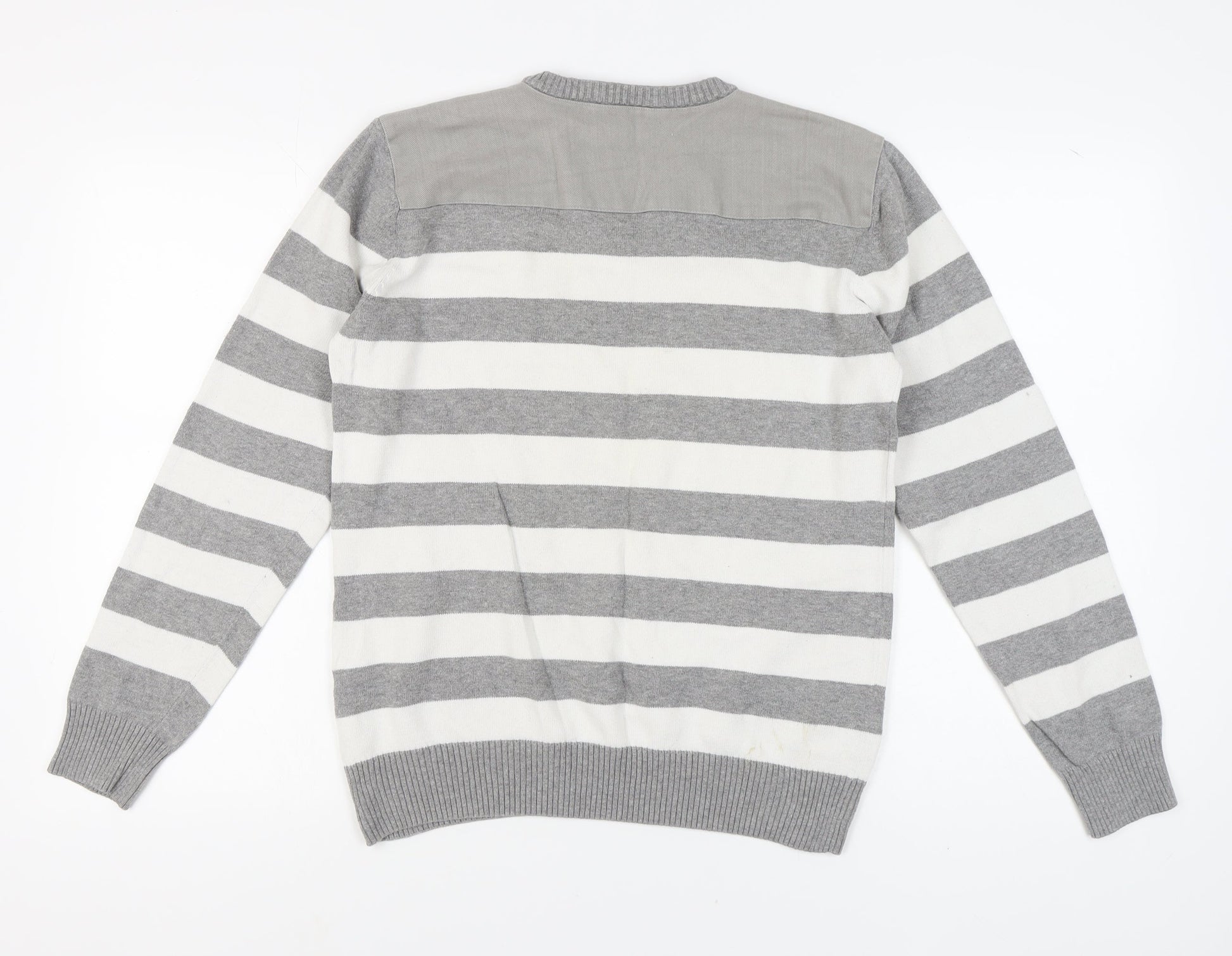 Jack & Jones Men's Grey Stripe Pullover in Size L