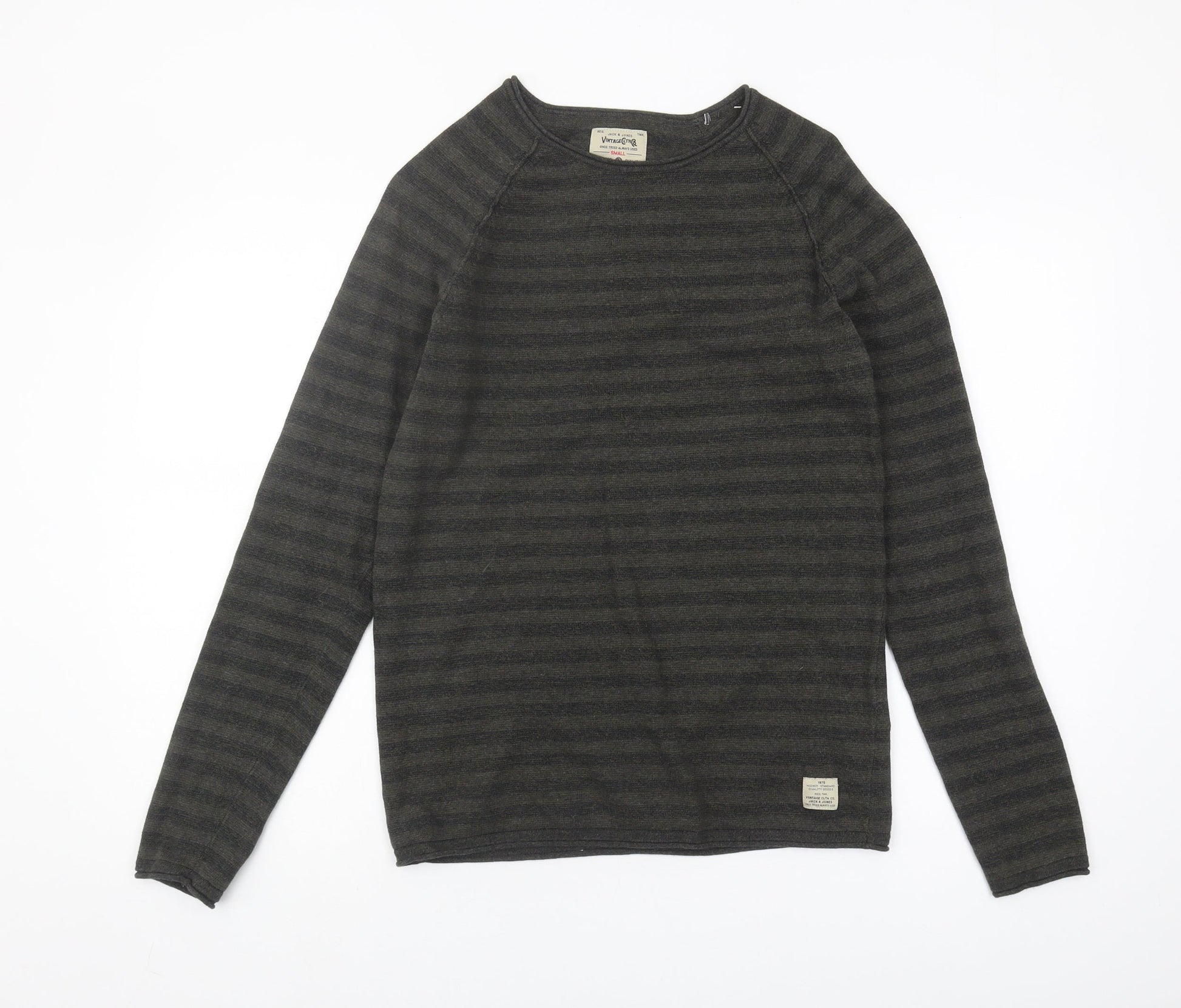 Jack & Jones Men's Grey Striped Pullover Jumper, Small