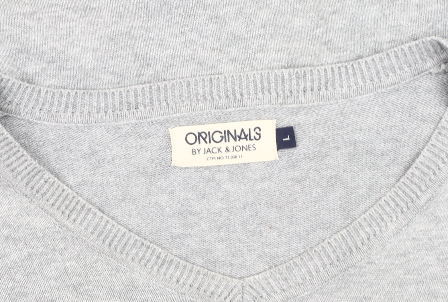 Jack & Jones Men's Grey V-Neck Pullover Jumper L
