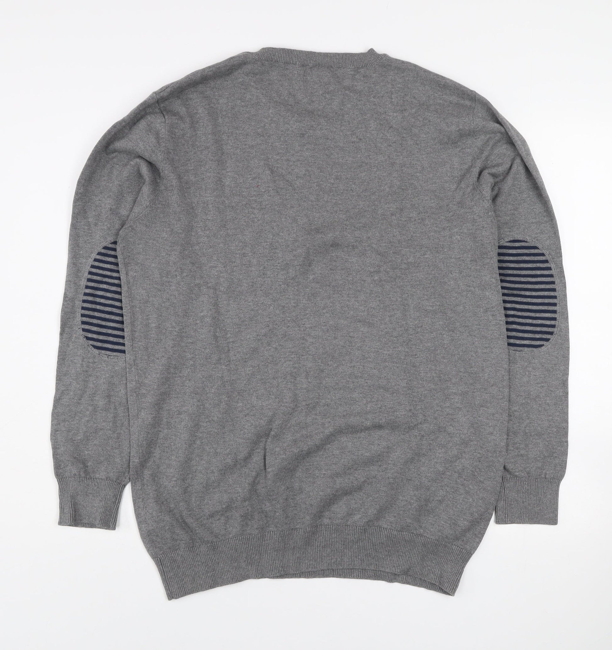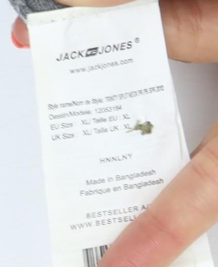 Jack & Jones Mens Grey XL Henley Cotton Knit Jumper