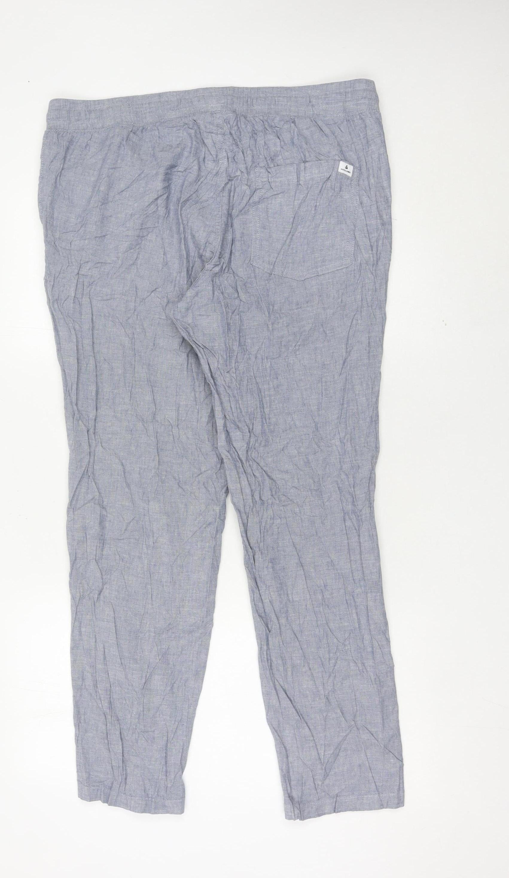 Jack & Jones Mens Grey XL Linen Blend Casual Trousers Drawstring Waist