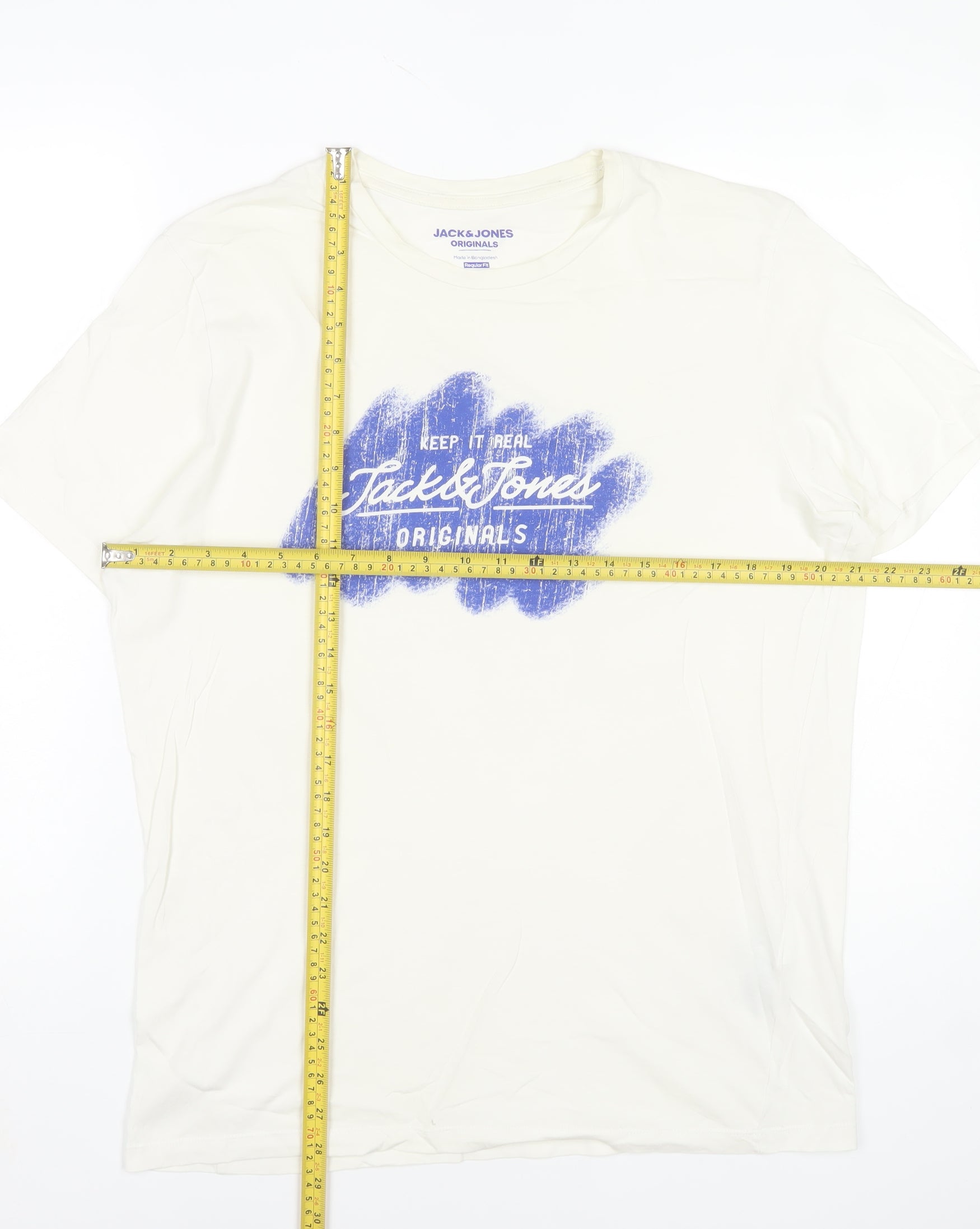 Jack & Jones Men's White Graphic Print T-Shirt Size L Regular Fit