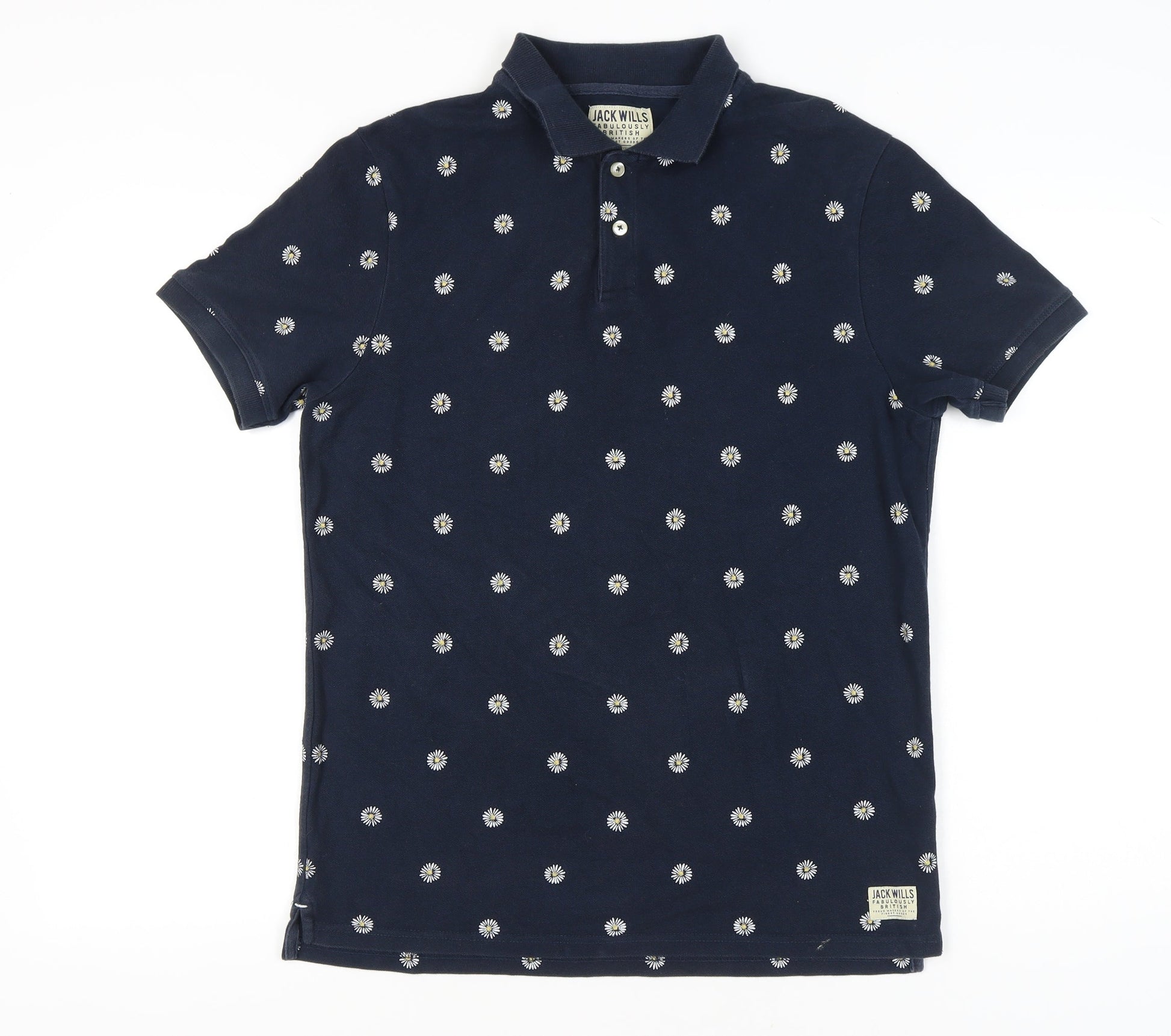 Jack Wills Men’s Blue Floral Polo Shirt Size M Cotton Casual