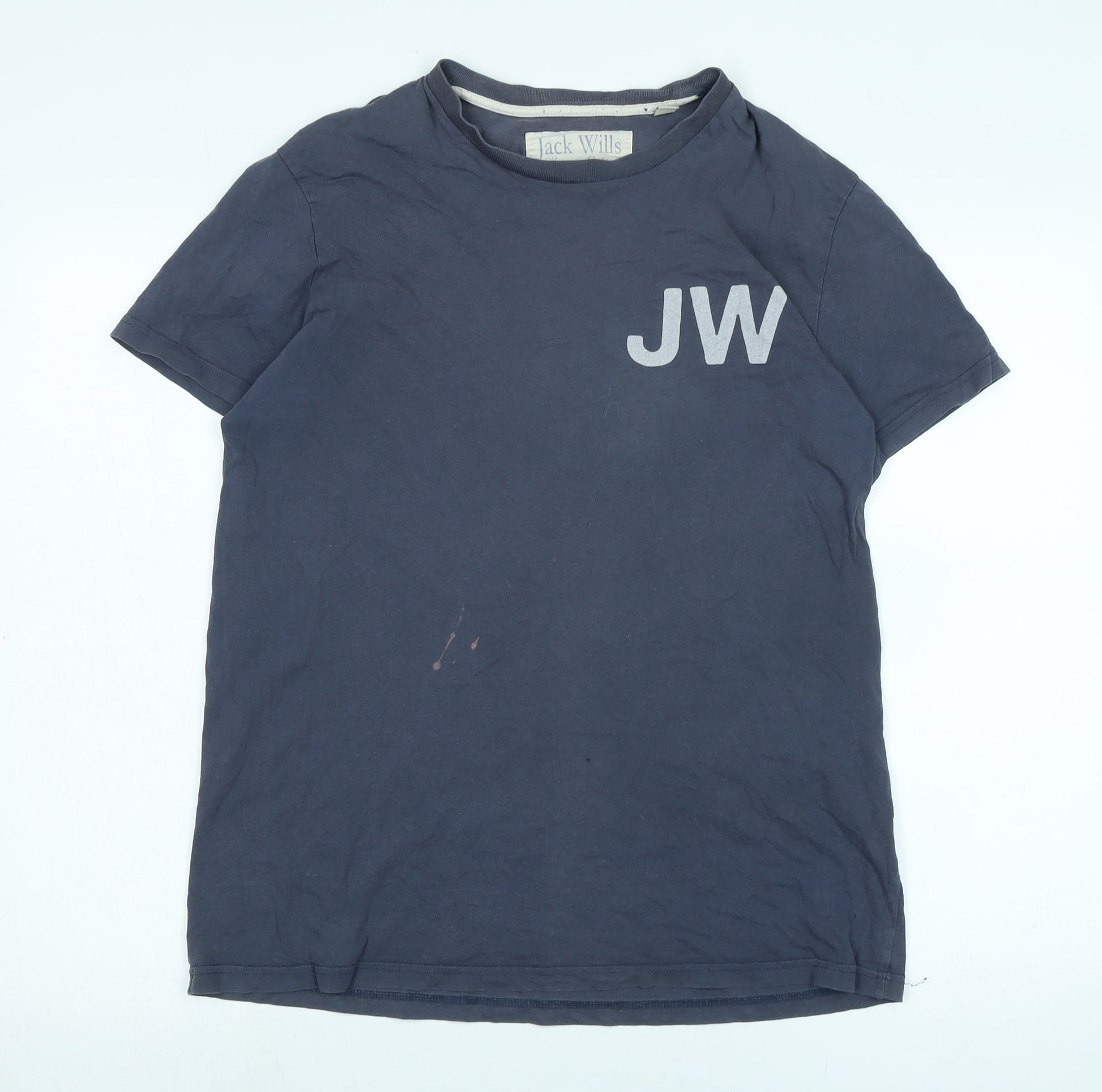 Jack Wills Mens Blue Cotton T-Shirt Size M Crew Neck - Logo - JW -4