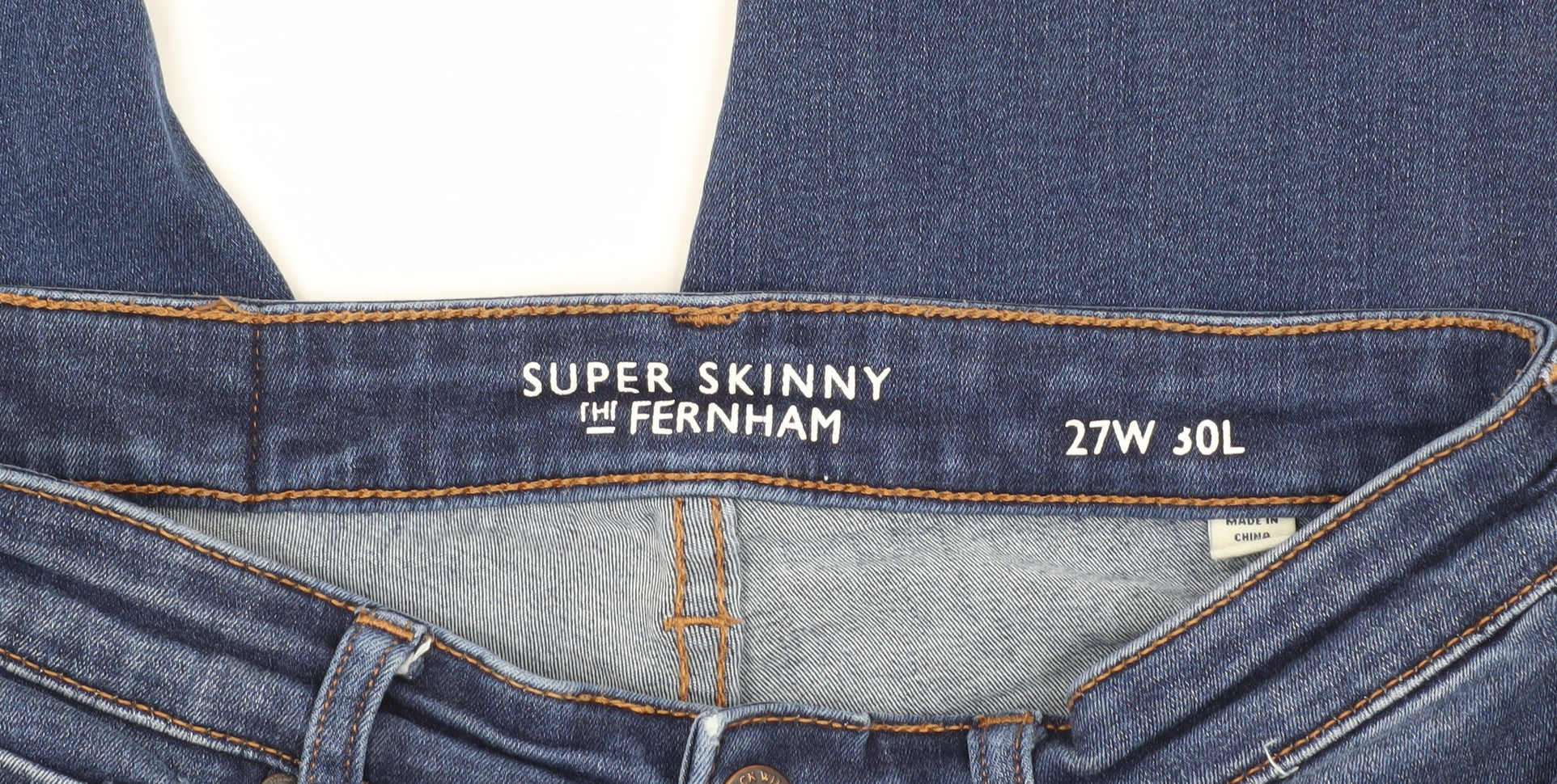 Jack Wills Men's Blue Skinny Jeans, Size 27, Medium Wash