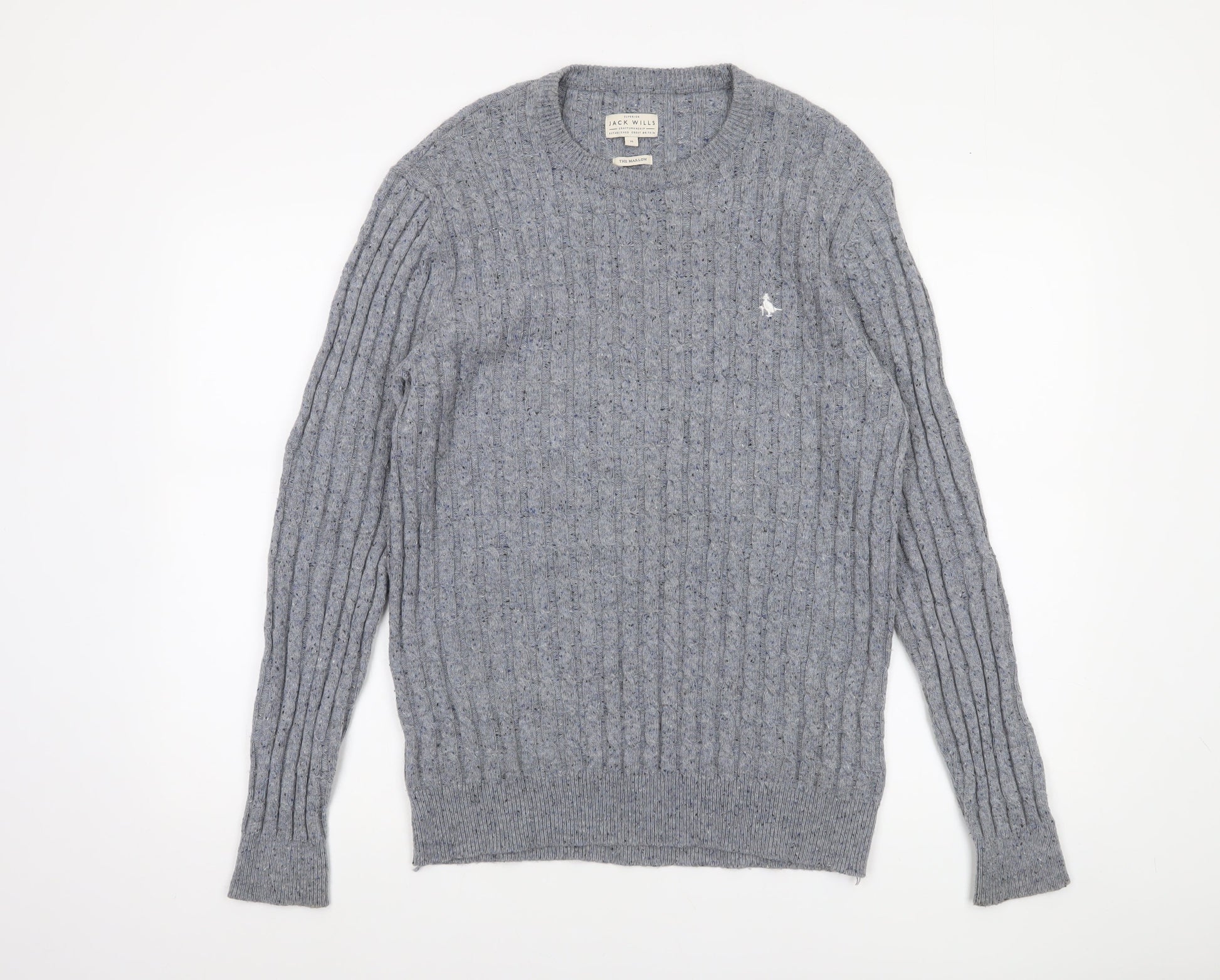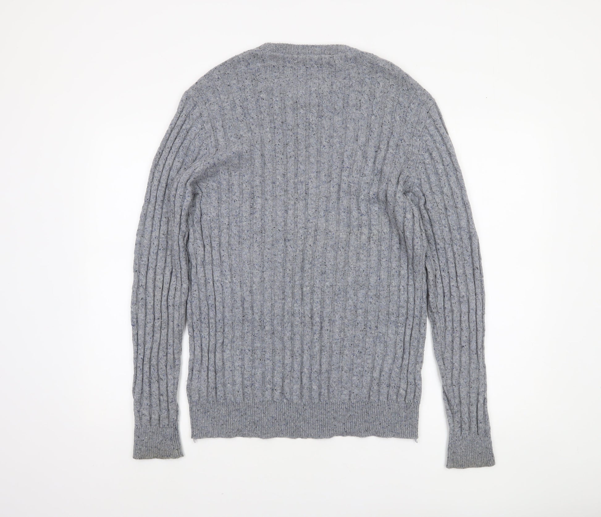 Jack Wills Mens Grey Cable-Knit Wool Cotton Jumper M
